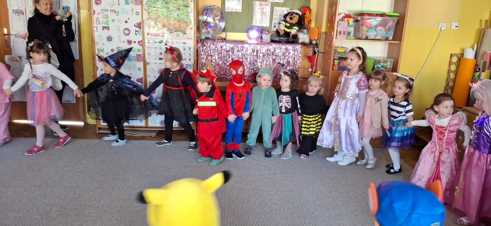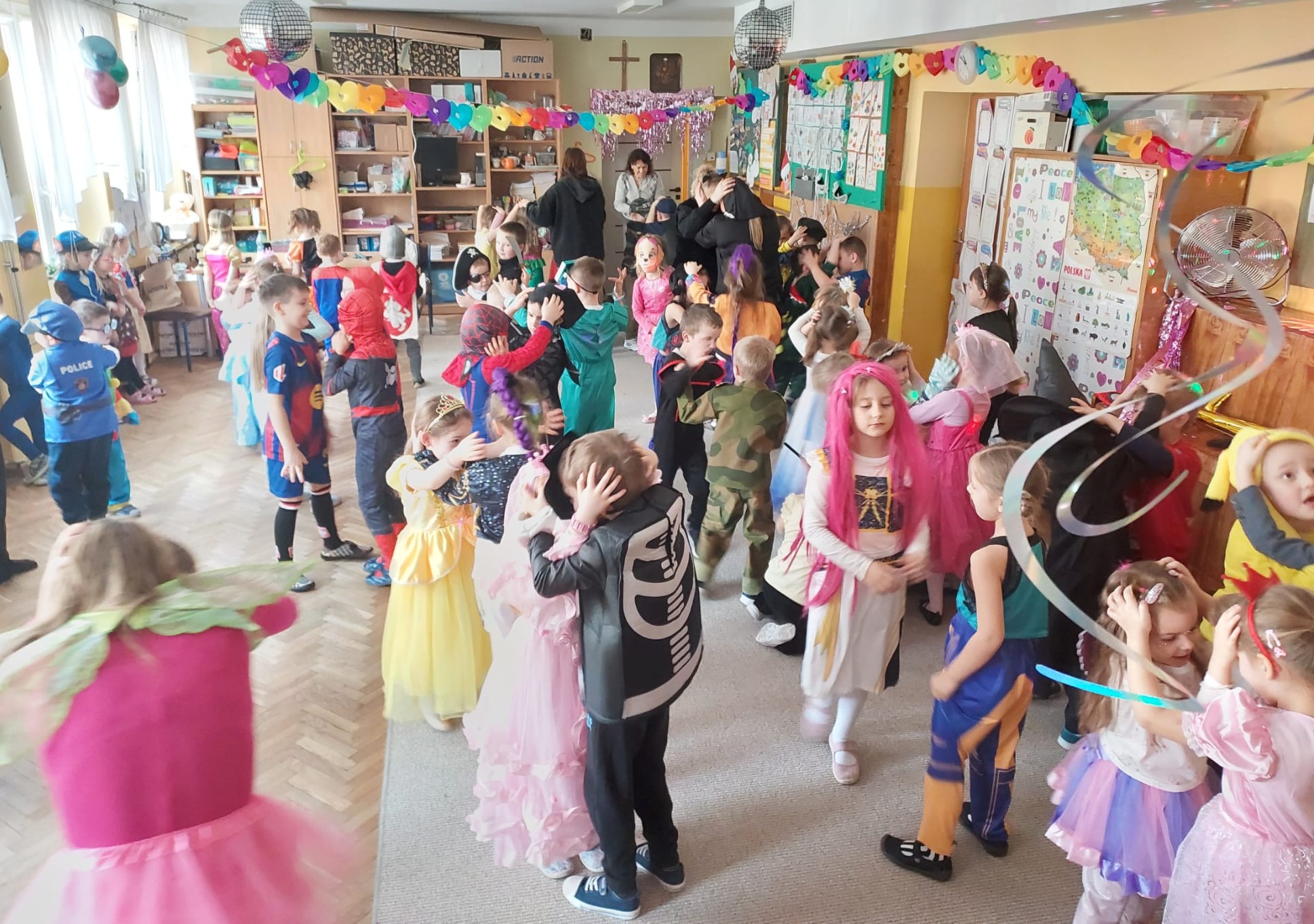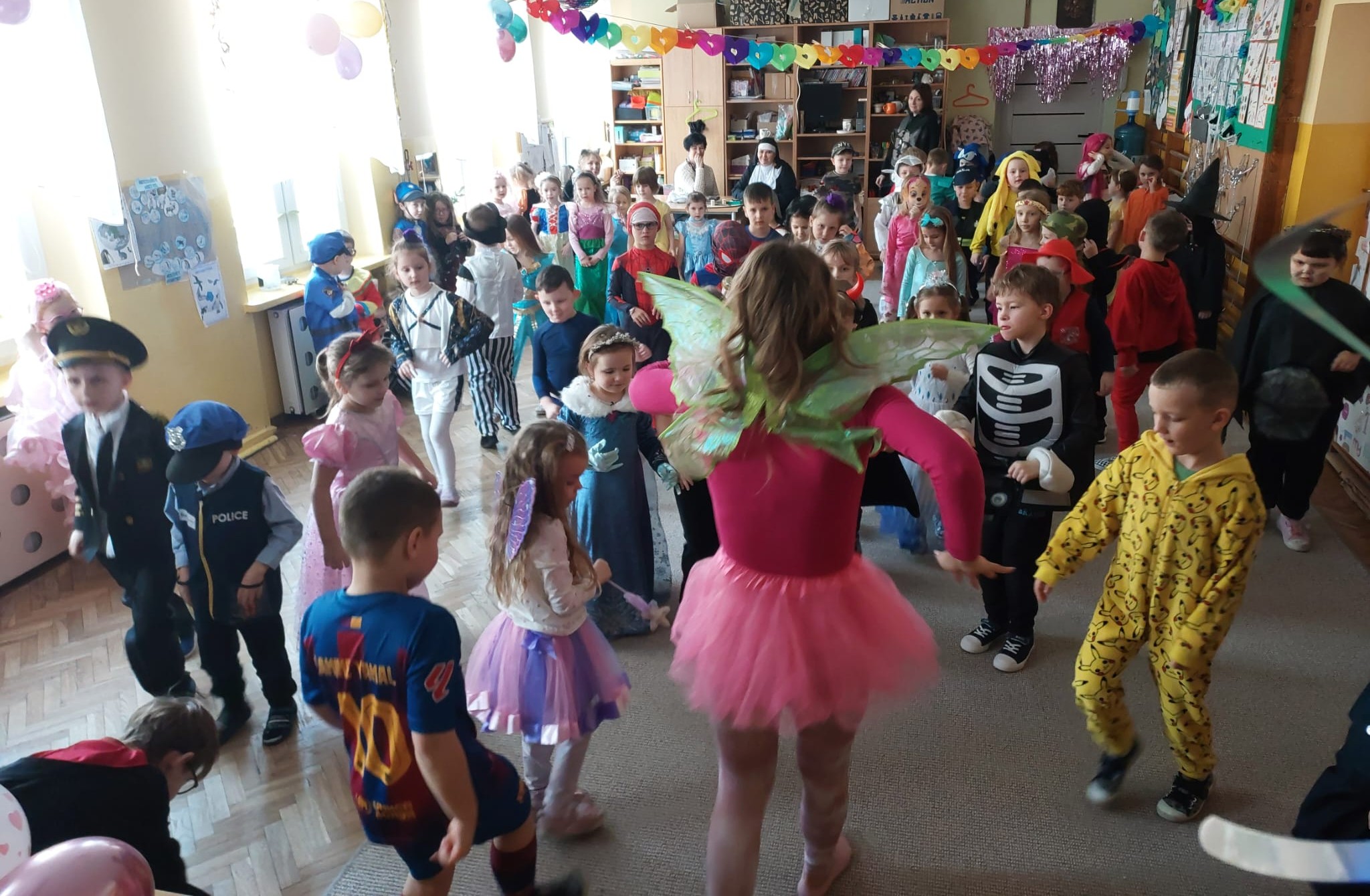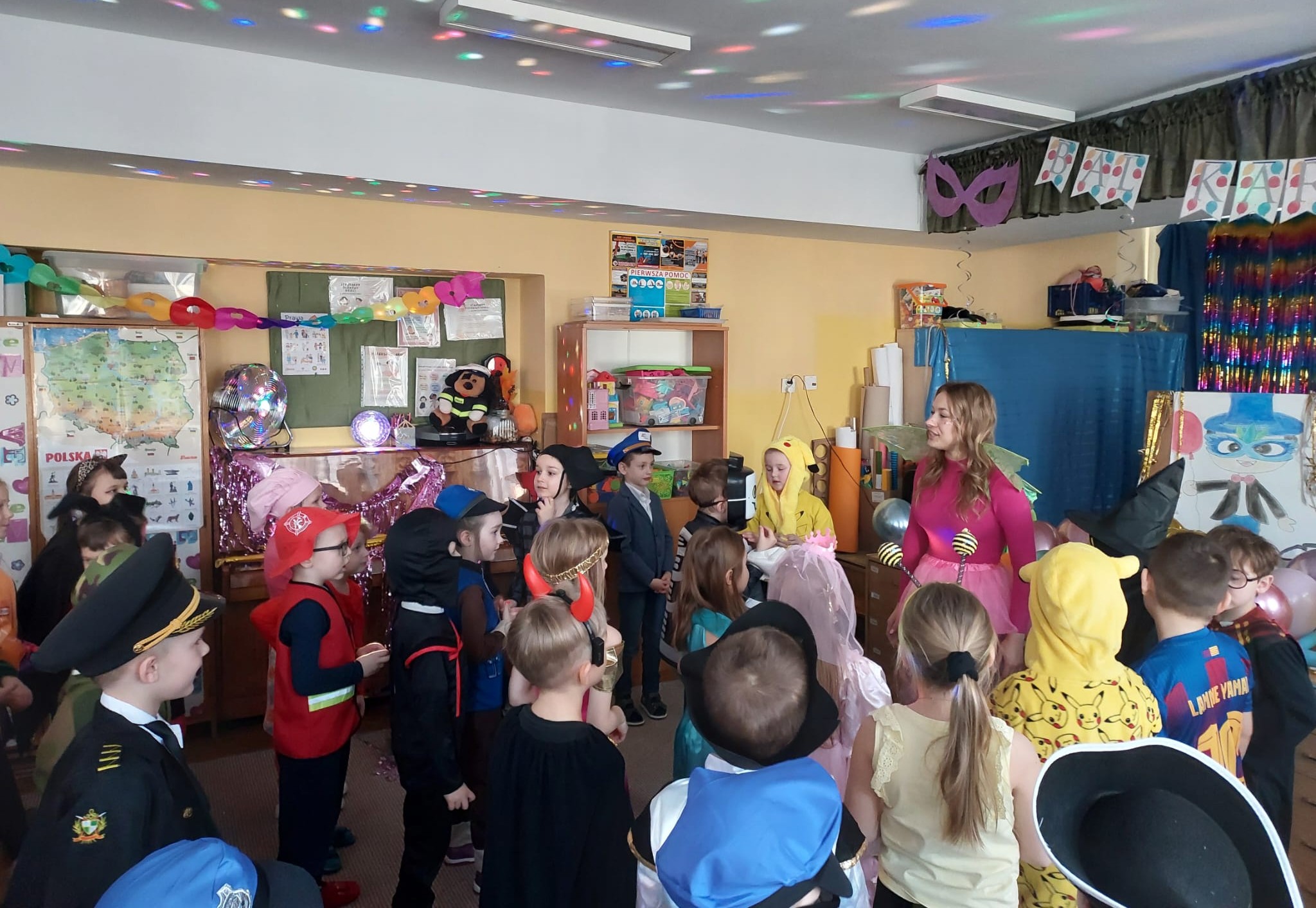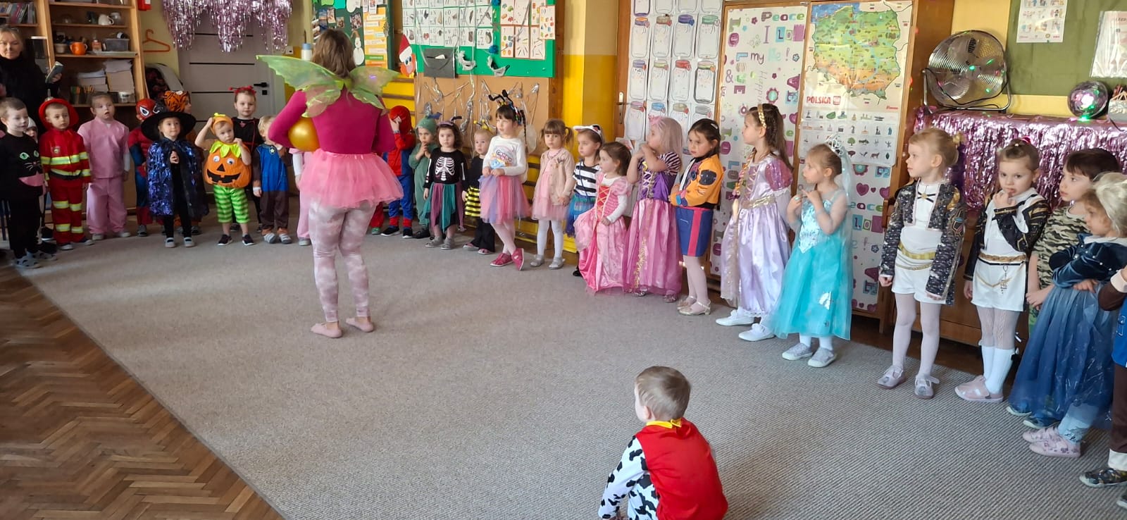 W przedostatni dzień karnawału, w poniedziałek przyszedł czas na Bal Karnawałowy dla naszych przedszkolaków. Dzieci przybyły w kolorowych i pomysłowych przebraniach, a sala zamieniła się w magiczną krainę pełną księżniczek, super bohaterów, zwierzątek i bajkowych postaci. Przy wesołej muzyce przedszkolaki chętnie brały udział w tańcach, zabawach i konkursach. Uśmiechy nie znikały z ich twarzy.