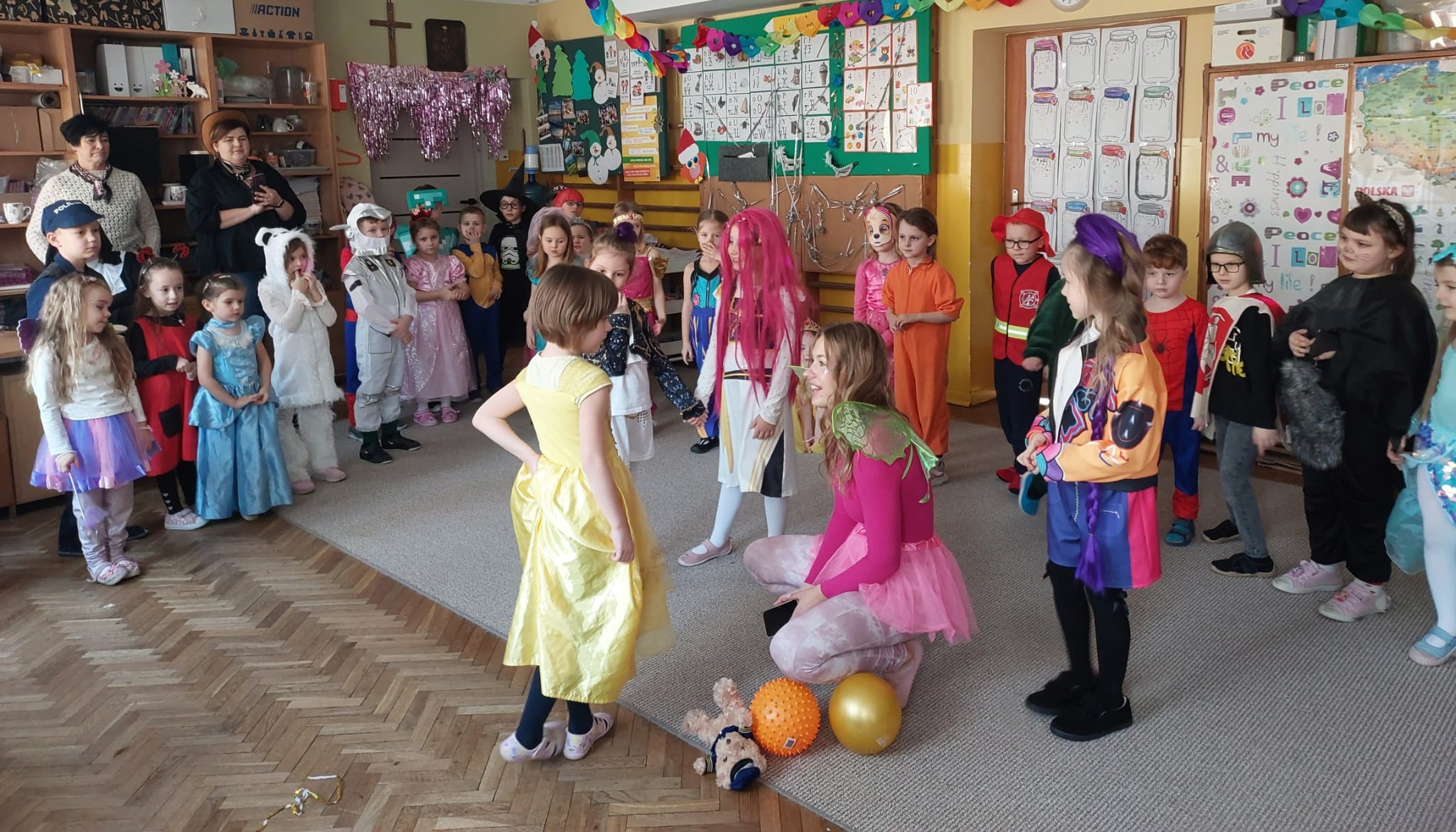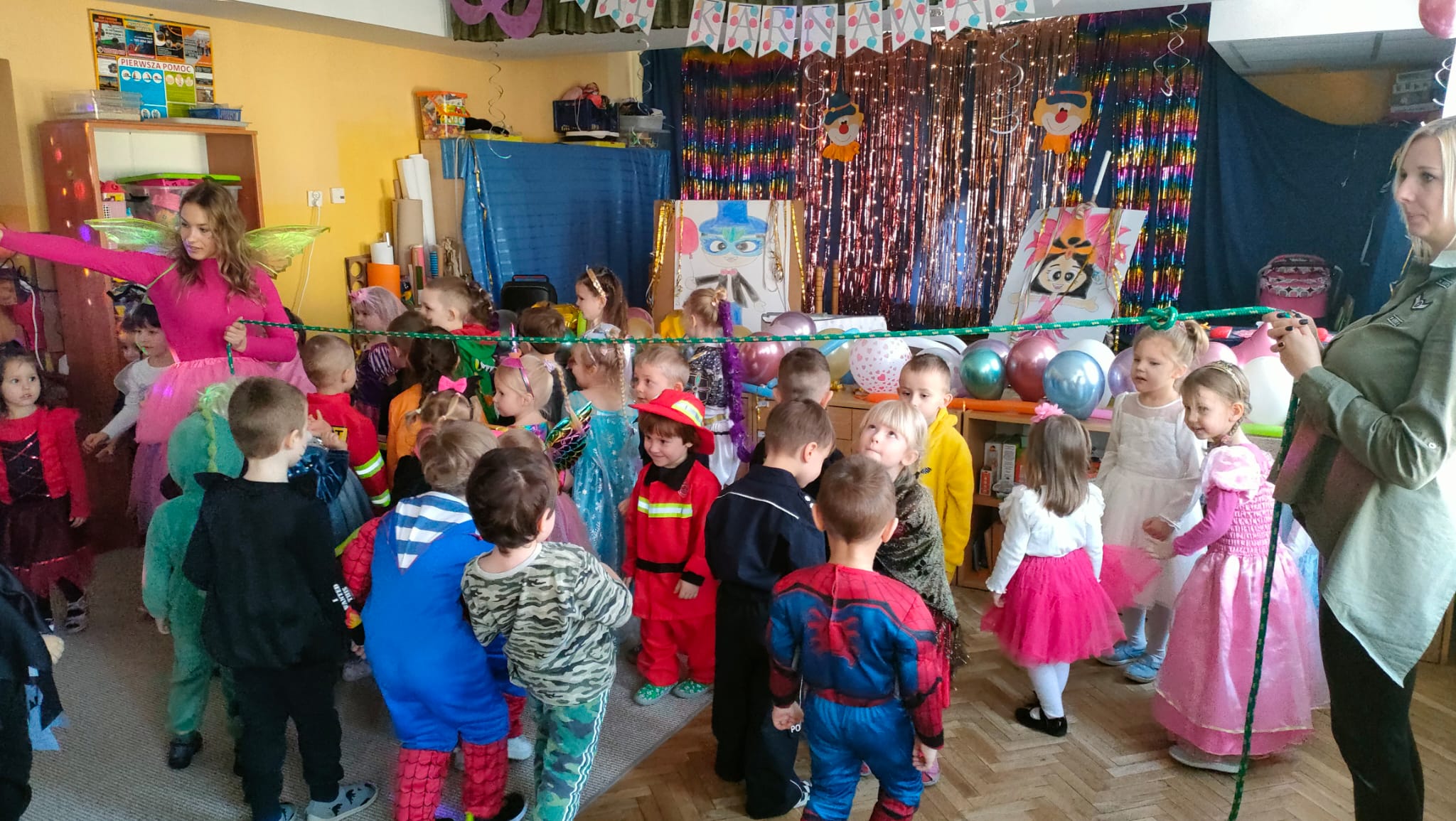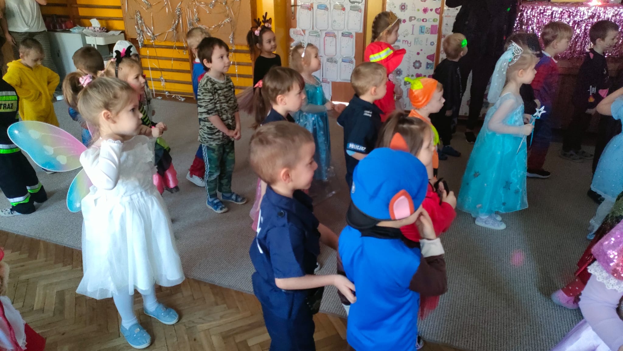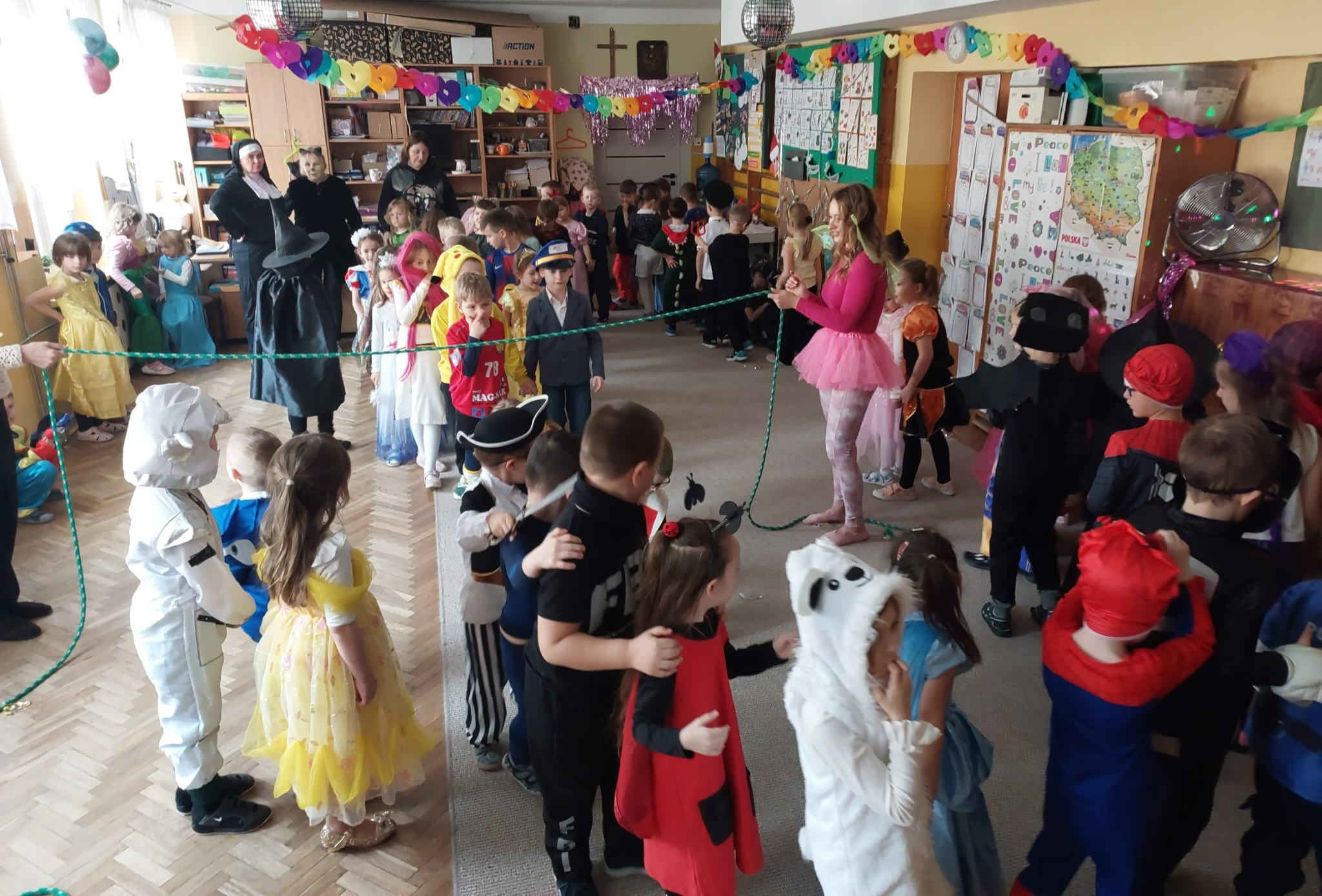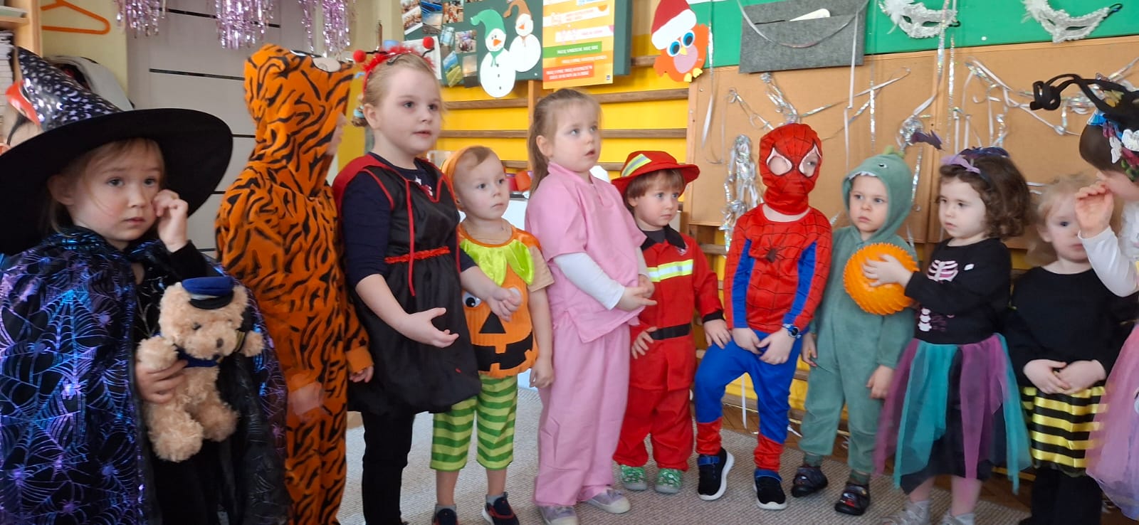 W przedostatni dzień karnawału, w poniedziałek przyszedł czas na Bal Karnawałowy dla naszych przedszkolaków. Dzieci przybyły w kolorowych i pomysłowych przebraniach, a sala zamieniła się w magiczną krainę pełną księżniczek, super bohaterów, zwierzątek i bajkowych postaci. Przy wesołej muzyce przedszkolaki chętnie brały udział w tańcach, zabawach i konkursach. Uśmiechy nie znikały z ich twarzy.