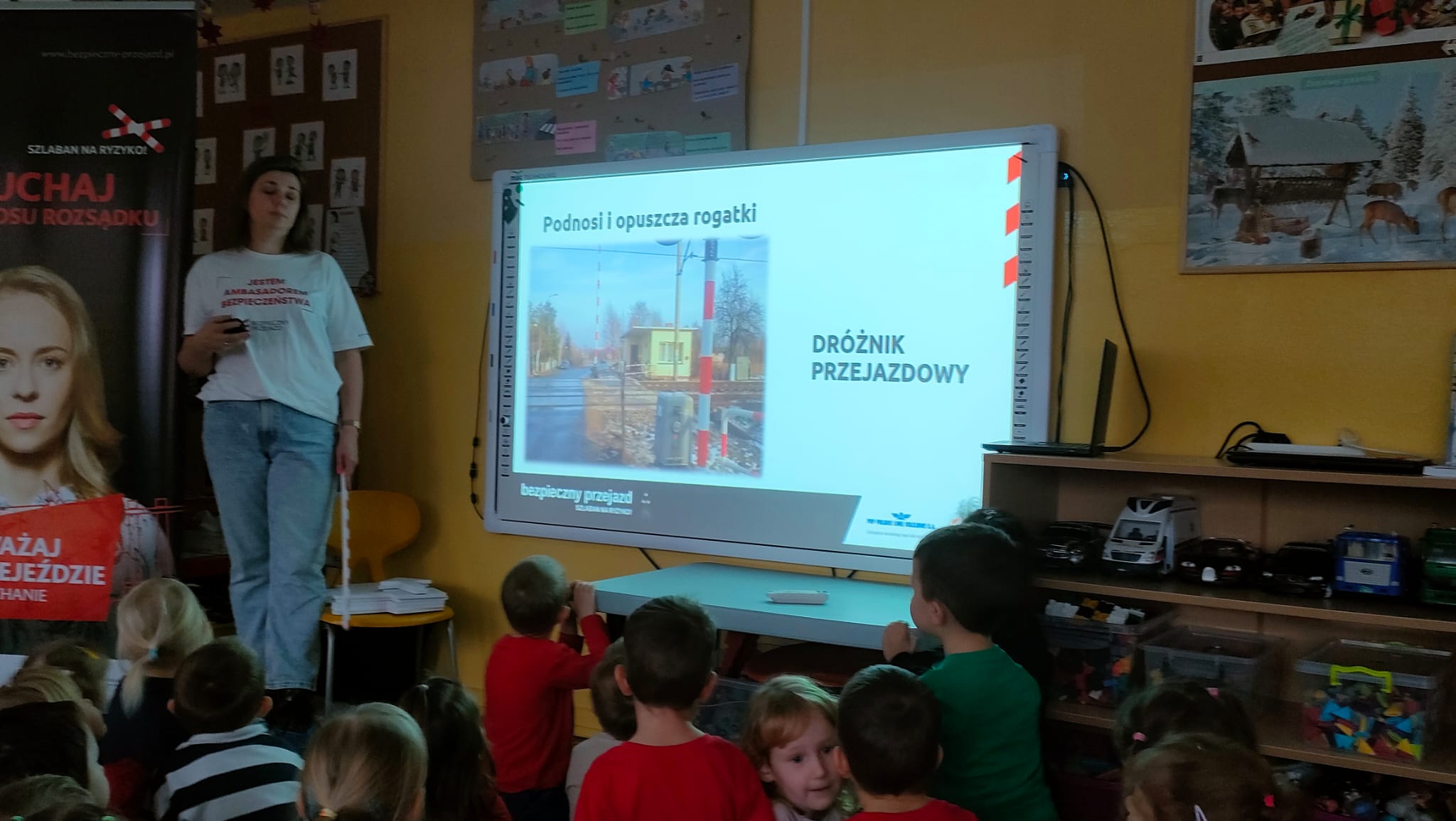 Przedszkolaki poznały najważniejsze zasady bezpieczeństwa, jakie należy zachować w pobliżu torów kolejowych oraz przejazdów drogowo- kolejowych.