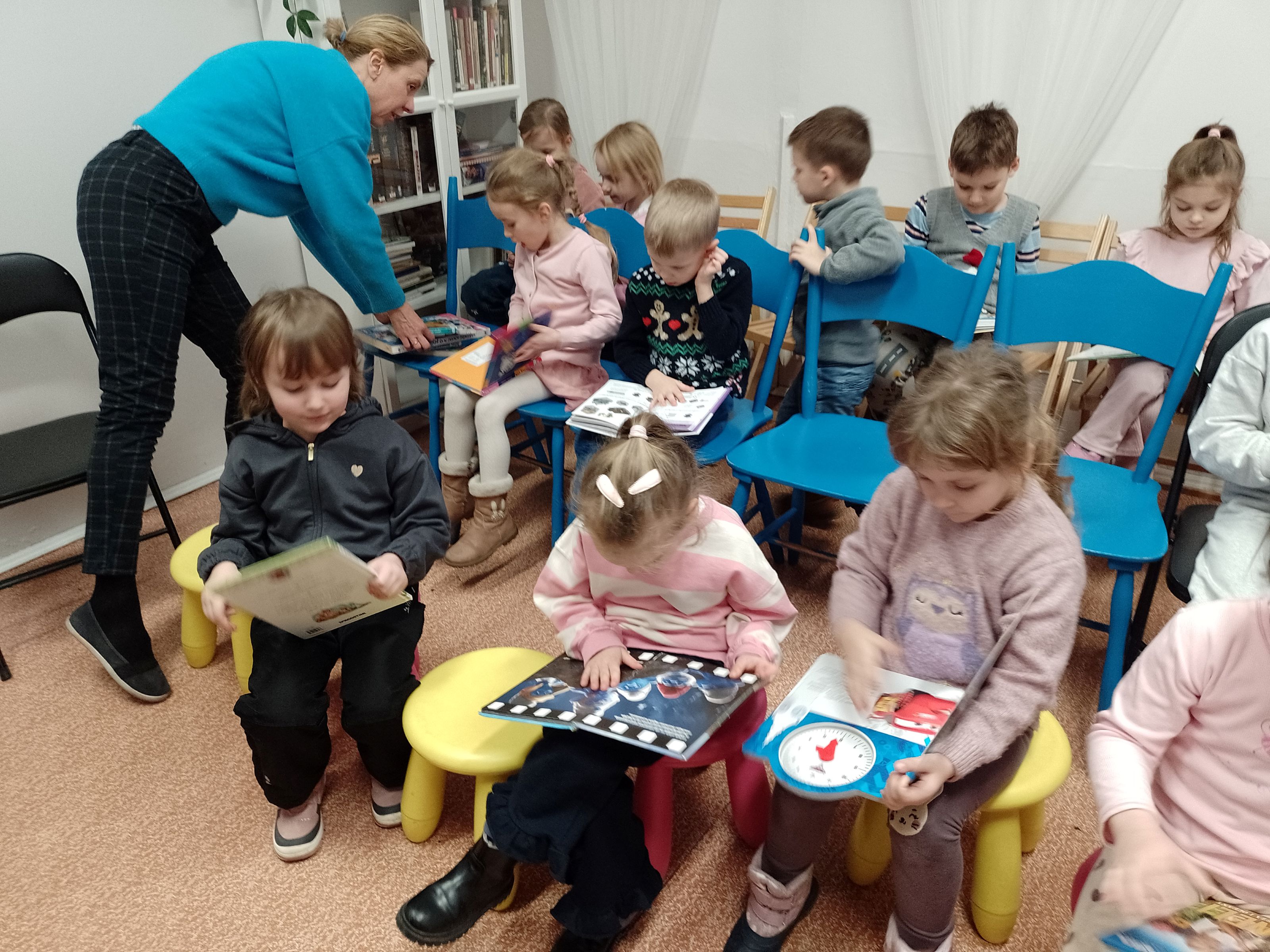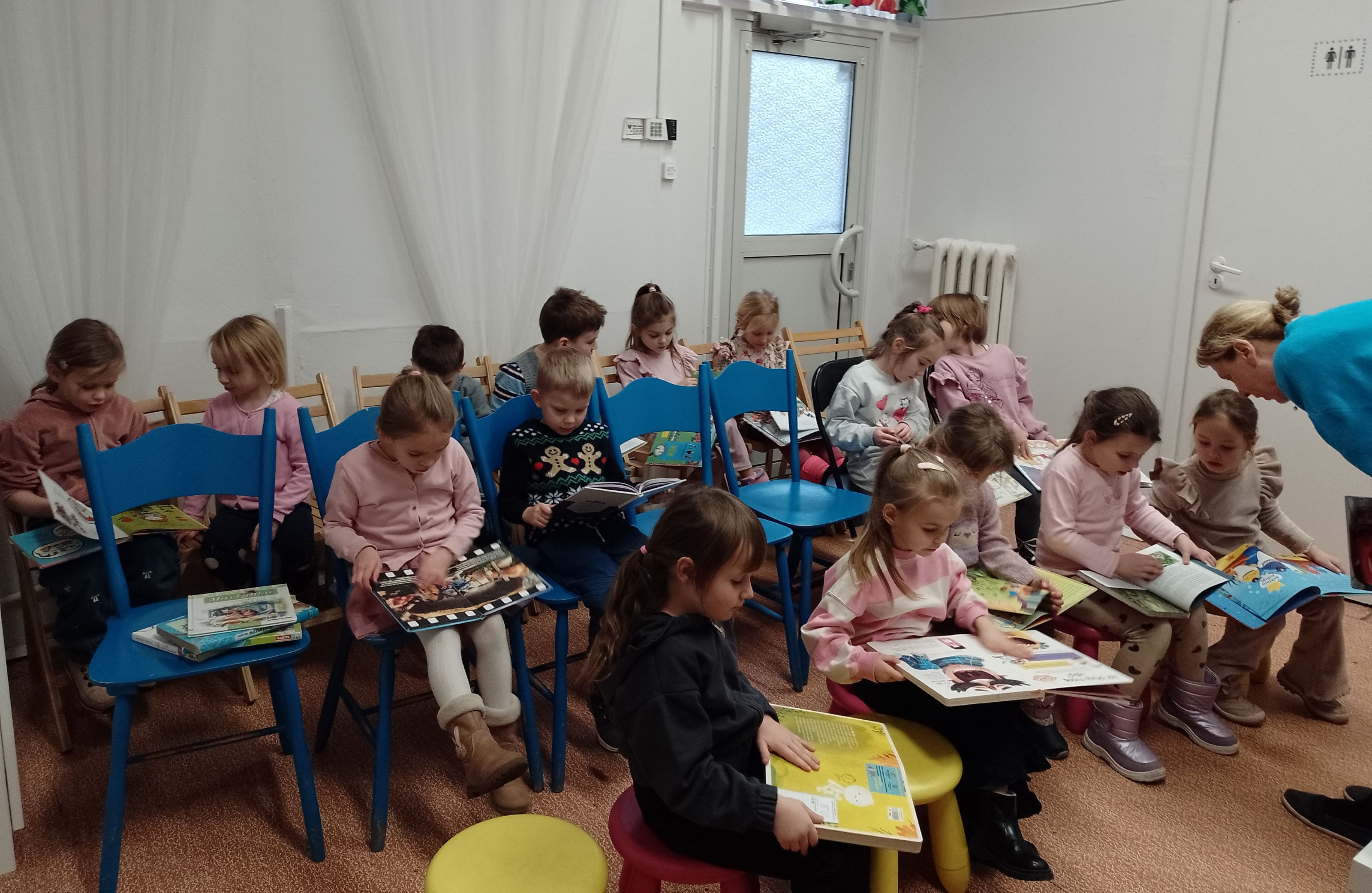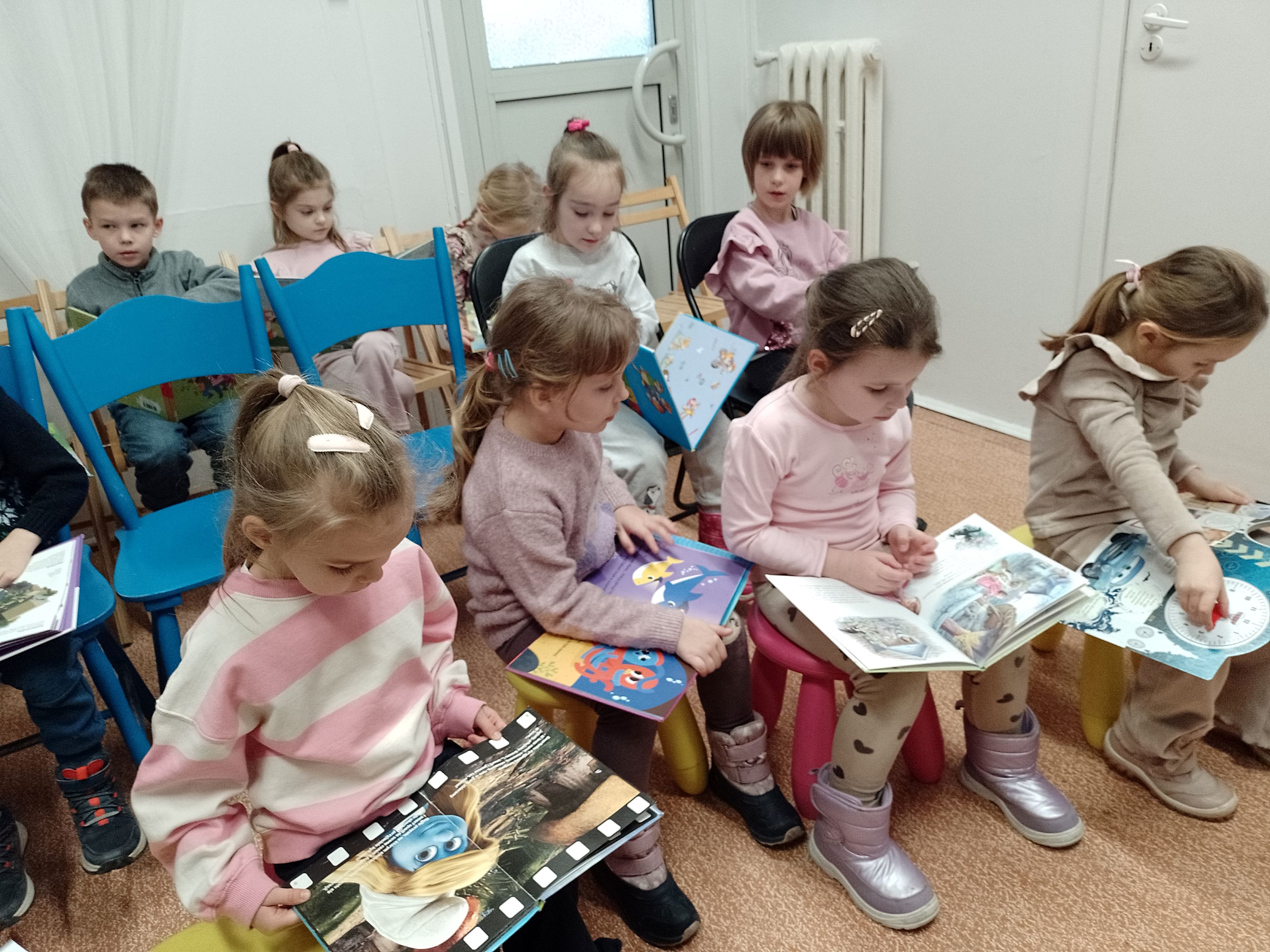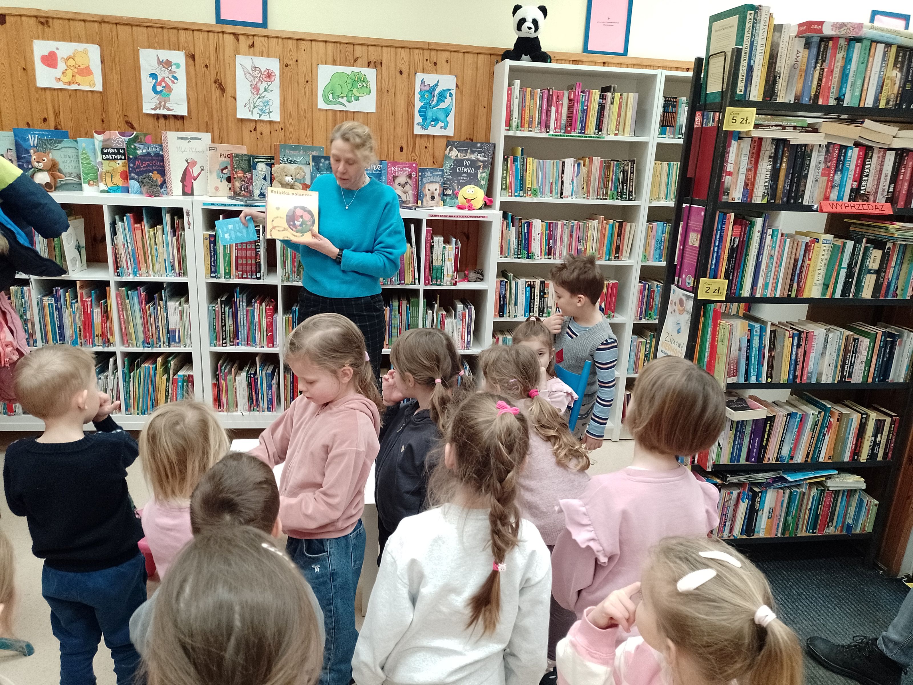 Wizyta w bibliotece było doskonałą okazją do zachęcenia najmłodszych do kontaktu z książką i wspólnego czytania.