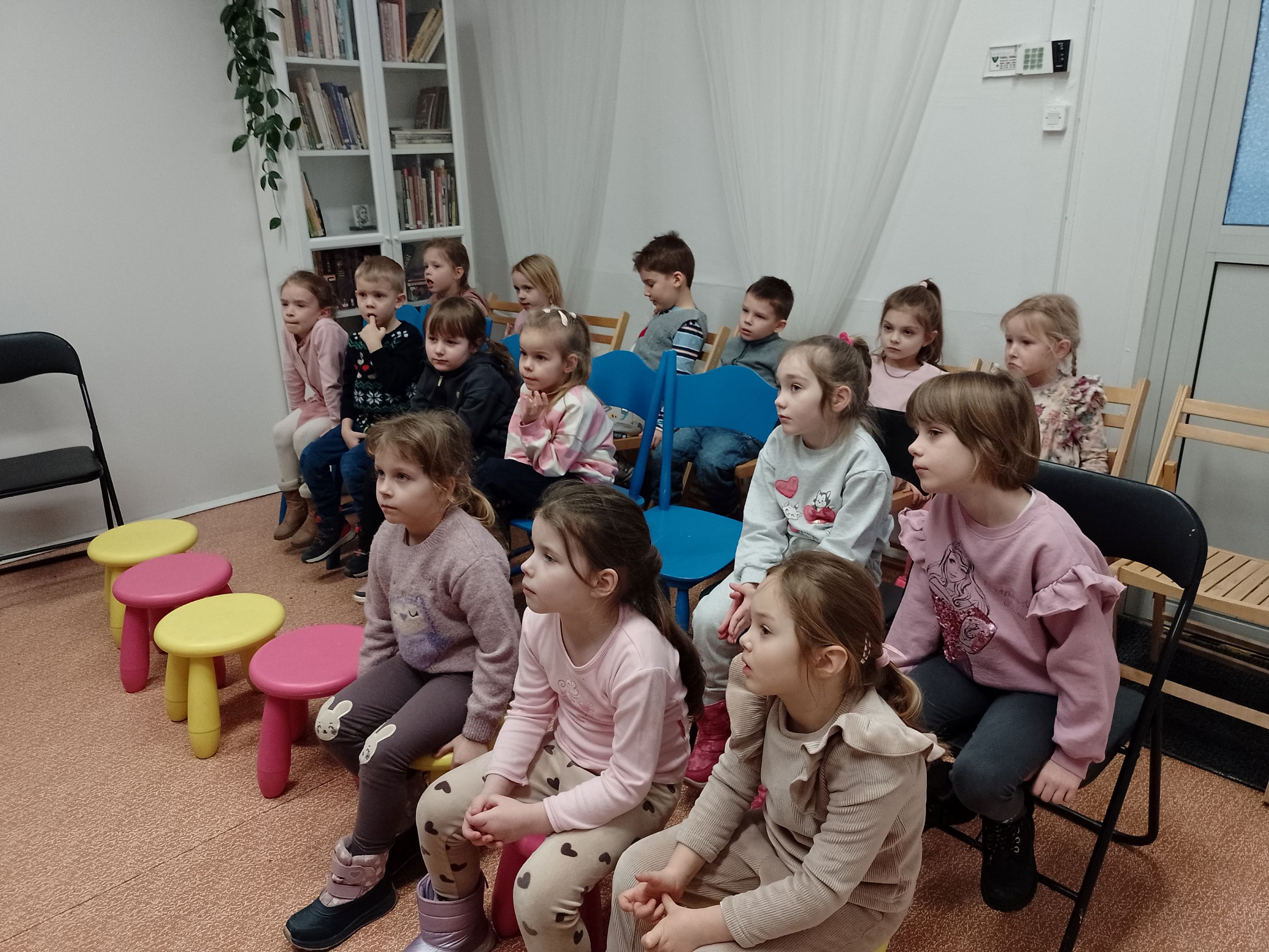 Przedszkolaki poznały zasady korzystania z biblioteki. Dowiedziały się, jak wypożycza się książki. W drugiej części spotkania słuchały kiążki Nicoli Kinnear "Ciii... Cichutko". Z zainteresowaniem oglądały też przygotowany księgozbiór dla dzieci.