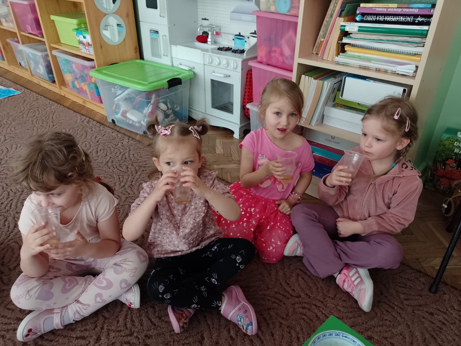 Z okazji Dnia Herbaty dzieci z grupy Biedronki miały okazję poznać różne rodzaje herbat- czarną, zieloną, białą i owocową. Dowiedziały się, jak nazywa się krzew, z którego pochodzą herbaciane liście. Oglądały przedmioty i różne dodatki do parzenia herbaty.