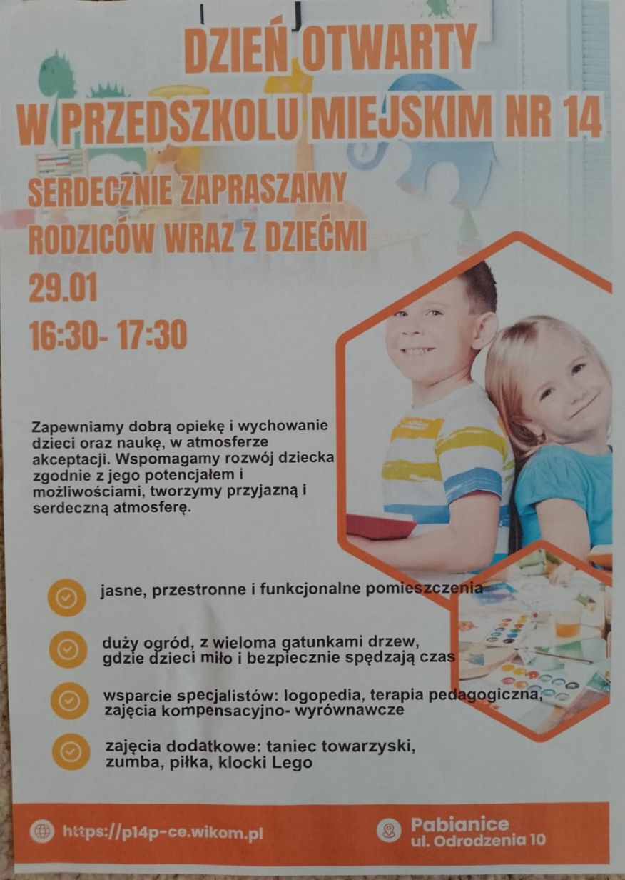 Dnia 29 stycznia w godzinach od 16.30 d0 17.30 zapraszamy Rodziców z dziećmi na Dzień Otwarty w naszym przedszkolu.