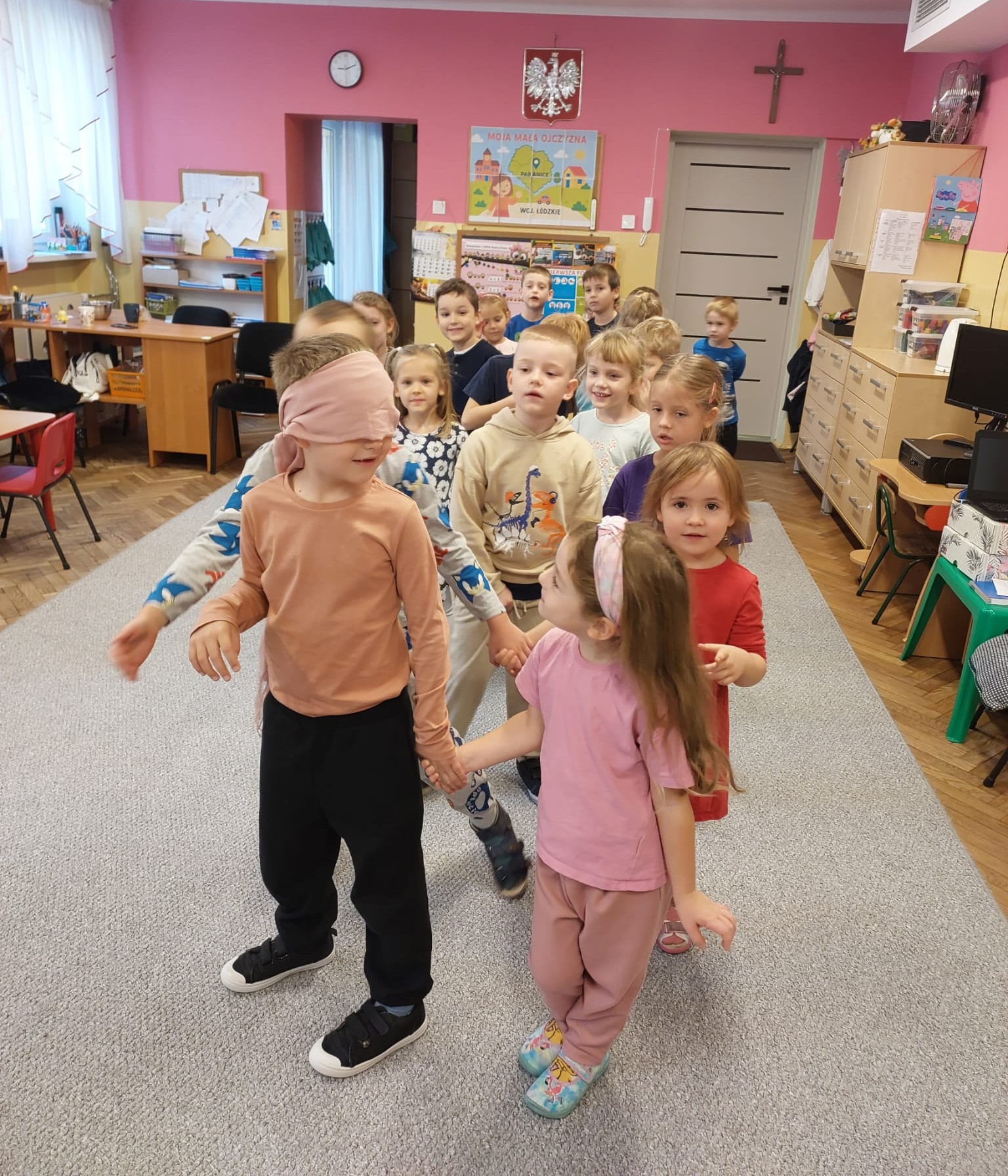 Uczyły się zgodnie współpracować, okazywać sobie zaufanie i szacunek, być dla siebie życzliwymi. Przedszkolaki rozmawiały o swoich emocjach i potrzebach. Dowiedziały się, jak rozwiązywać konflikty w bezpieczny sposób. Poczucie wspólnoty, wzajemnego zaufania i empatii Mrówki budowały poprzez udział w różnorodnych zajęciach dydaktycznych z użyciem tematycznych pomocy, ilustracji, sylwet i emotek takich jak: ,,Magiczne pudełko uczuć”, ,,Dobry duszek”. Były też zabawy i gry ruchowe: ,,Podaj dalej uśmiech”, ,,Most przyjaźni’’, ,,Pomagam koledze’’. Razem integrowały się w działaniach twórczych - ,,Ręce przyjaźni”, ,,Wspólny obrazek”, ,,Budujemy miasto”.