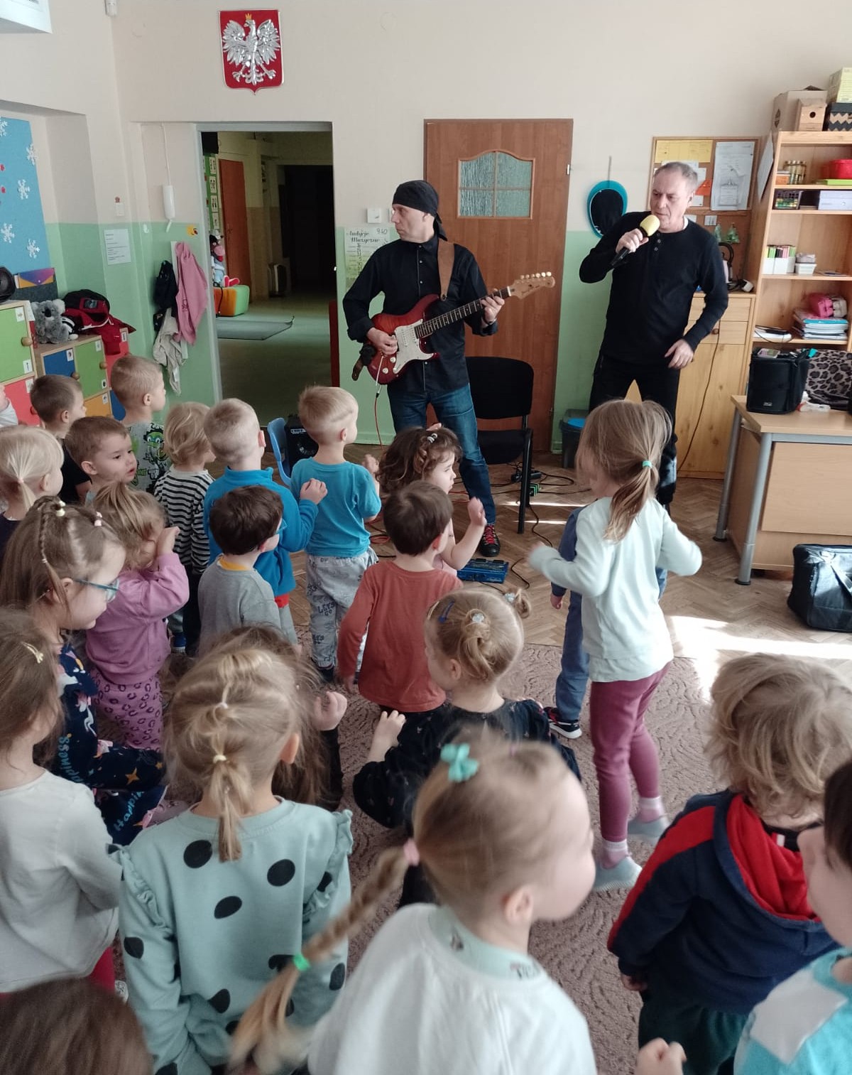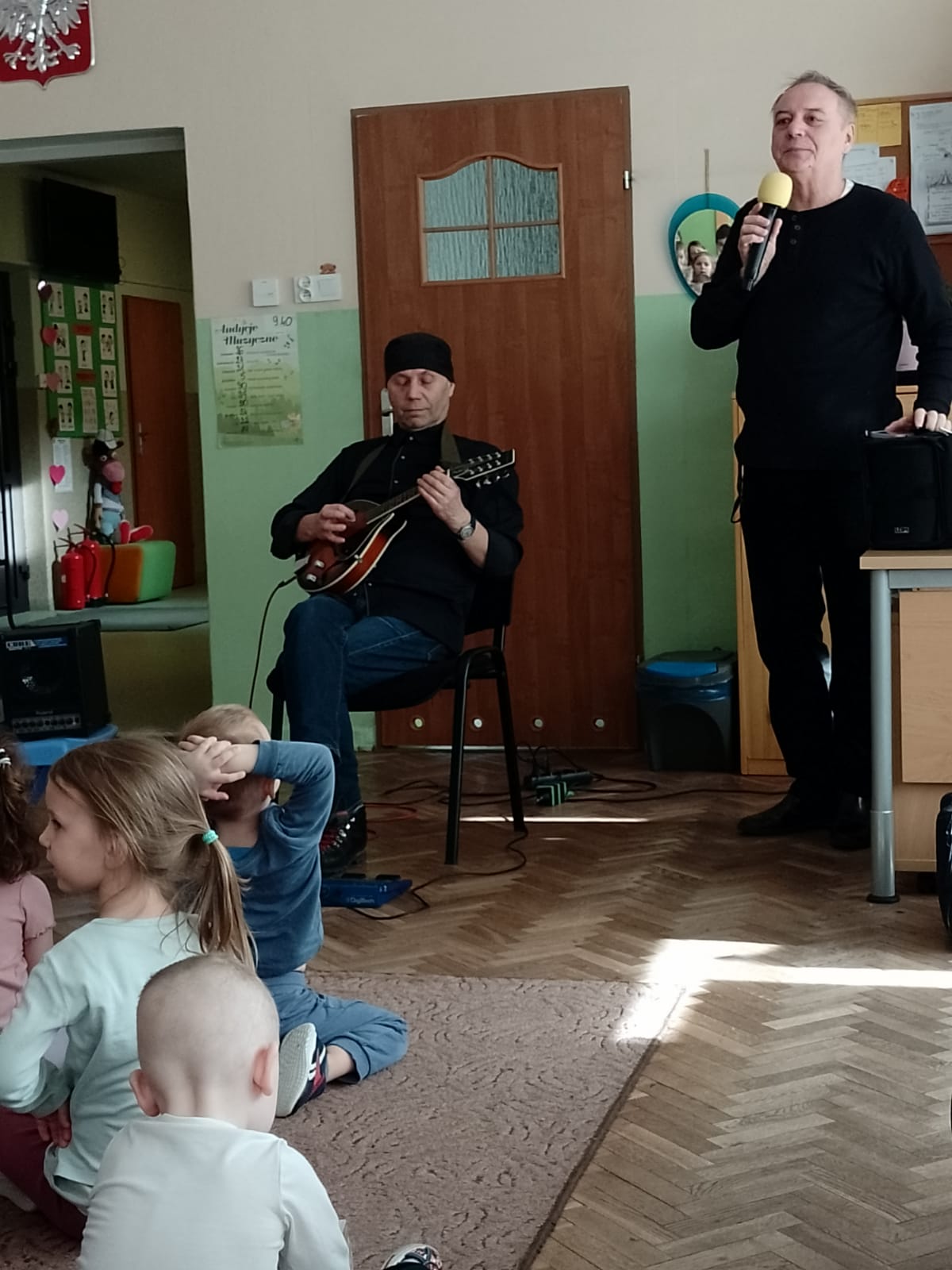 Podczas lutowego koncertu muzycznego dzieci miały okazję poznać bliżej dwa instrumenty strunowe - mandolinę i gitarę elektryczną.