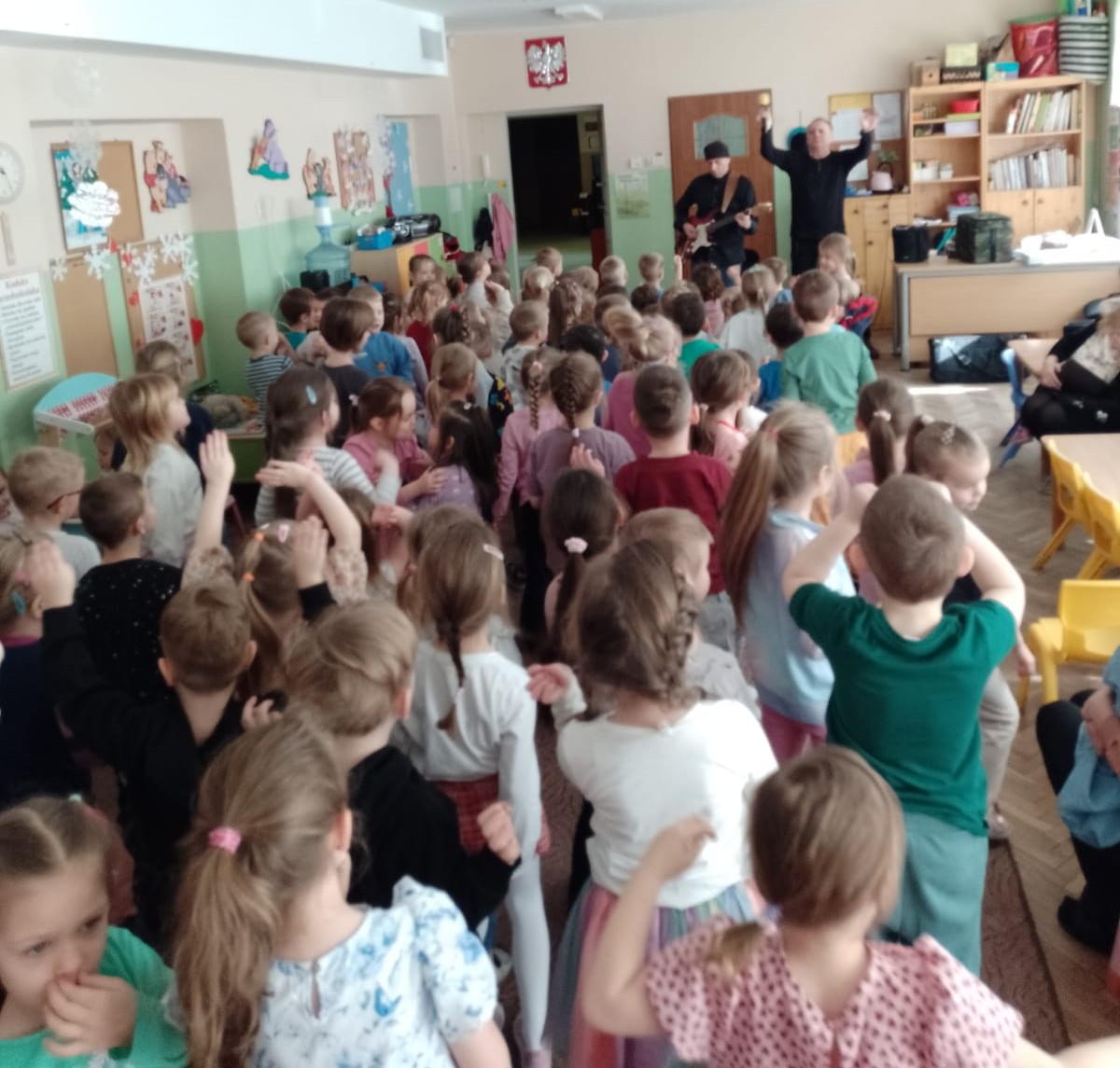 Dzieci aktywnie uczestniczyły w spotkaniu. Klaskały do muzyki, odgadywały zagadki muzyczne oraz tańczyły przy rockandrollowych i rockowych rytmach.