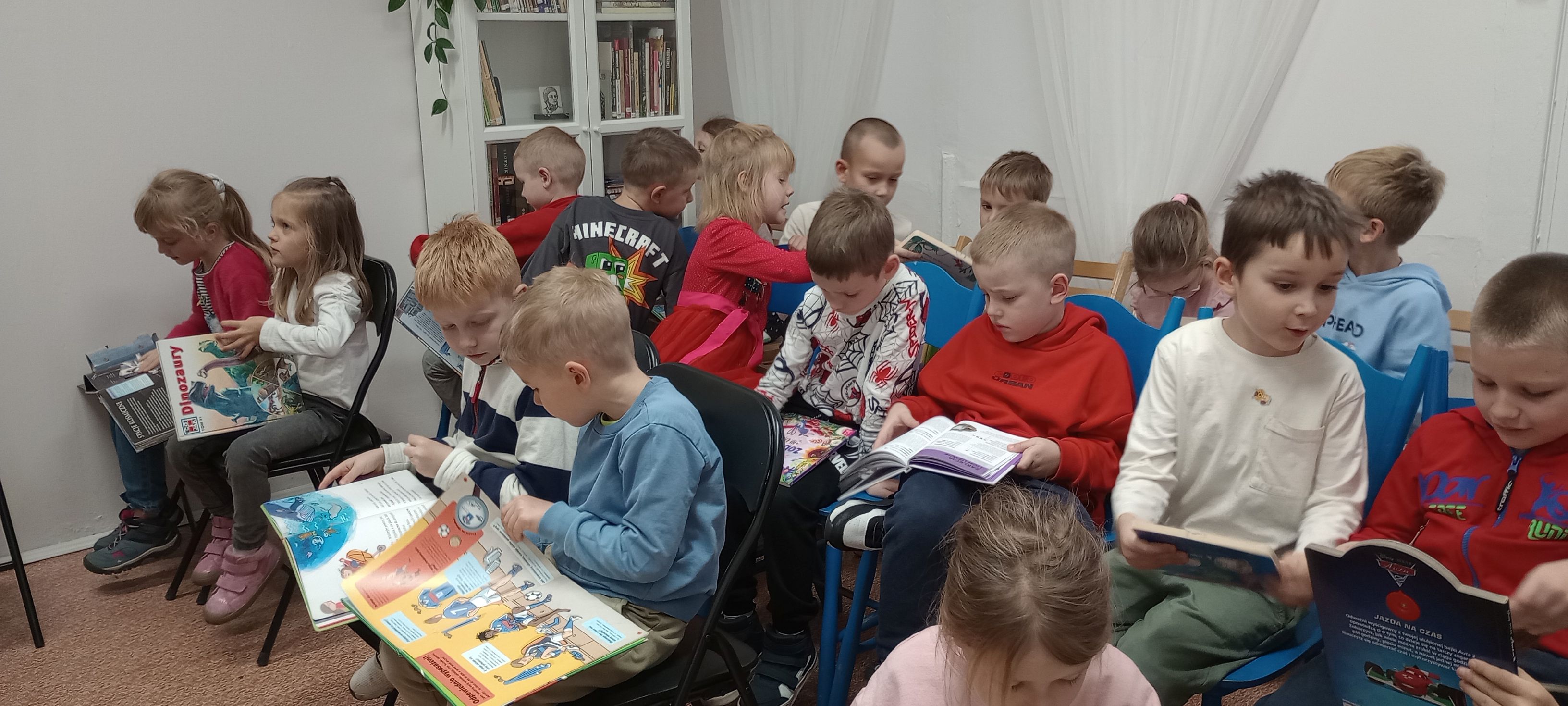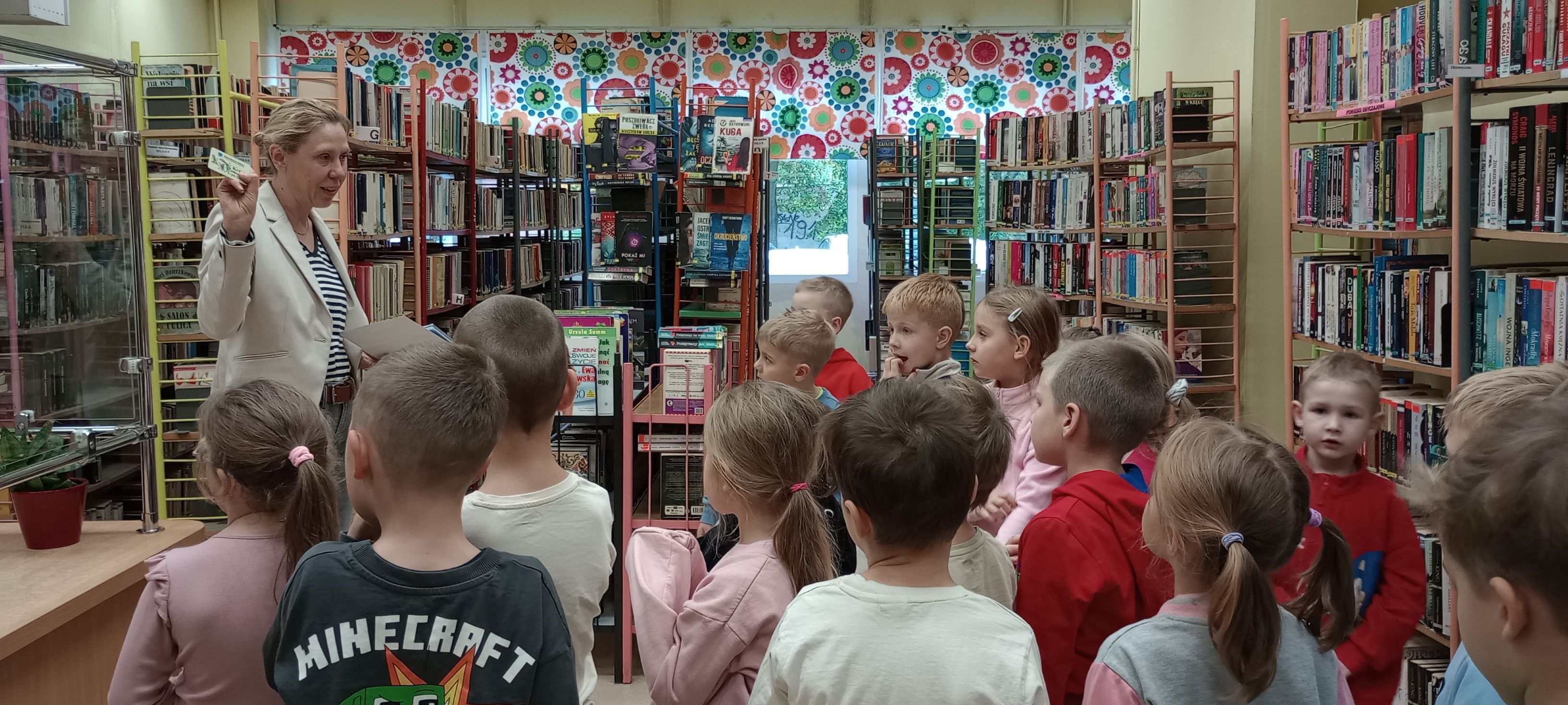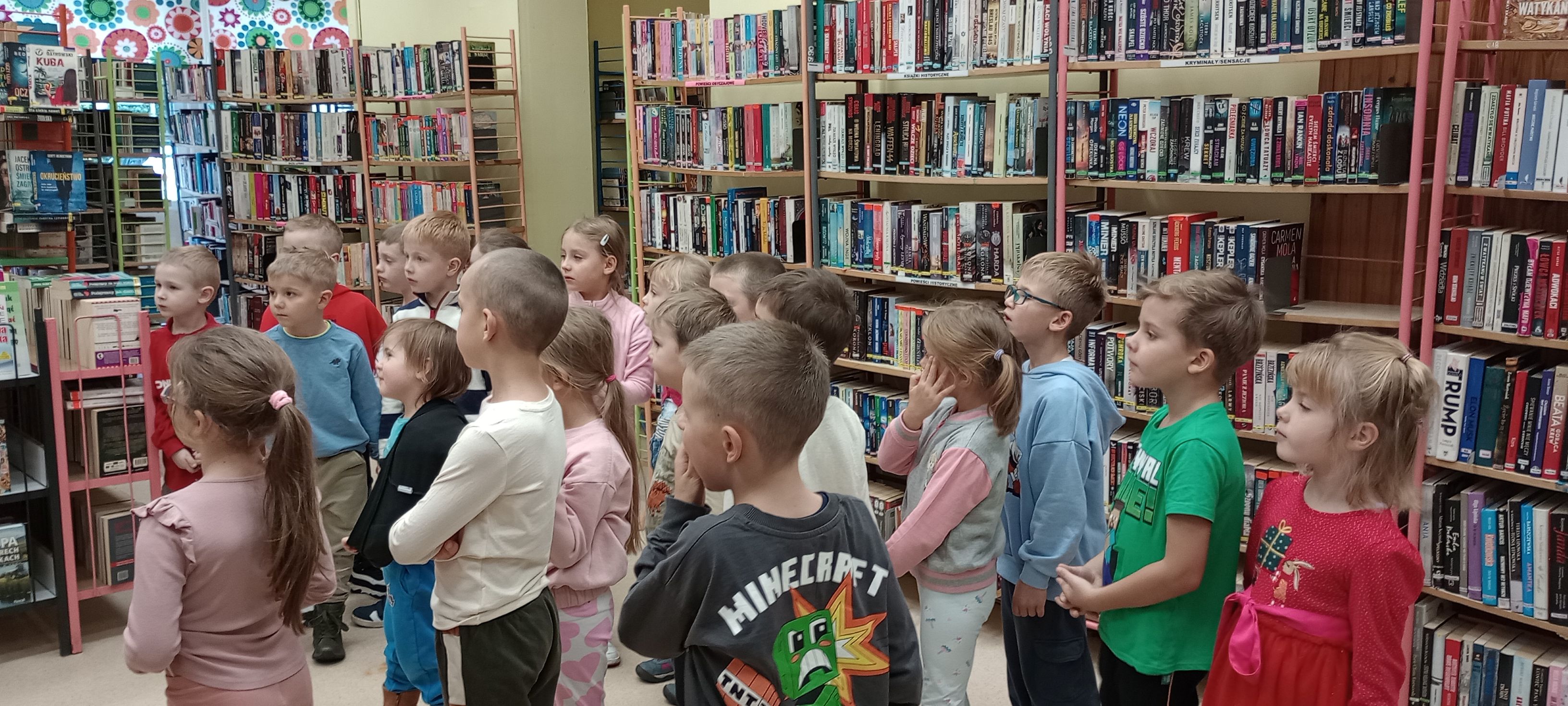 Dnia 15 października dzieci z grupy Mrówki odwiedziły Bibliotekę Osiedlową przy ulicy Łaskiej. Na spotkaniu dzieci zapoznały się z funkcjonowaniem biblioteki, działami czytelniczymi. Zobaczyły kartę biblioteczną i poznały sposób wypożyczania książek. Wysłuchały bajki czytanej przez prowadzącą spotkanie panią Agnieszkę. Oglądały różnorodne książki o tematyce dziecięcej.