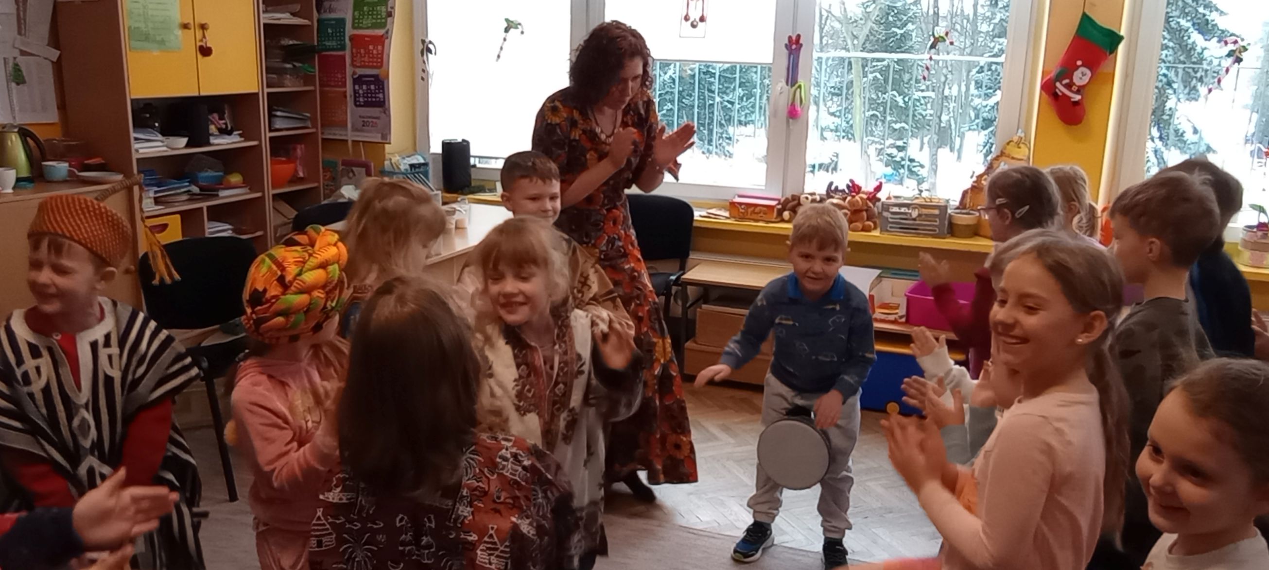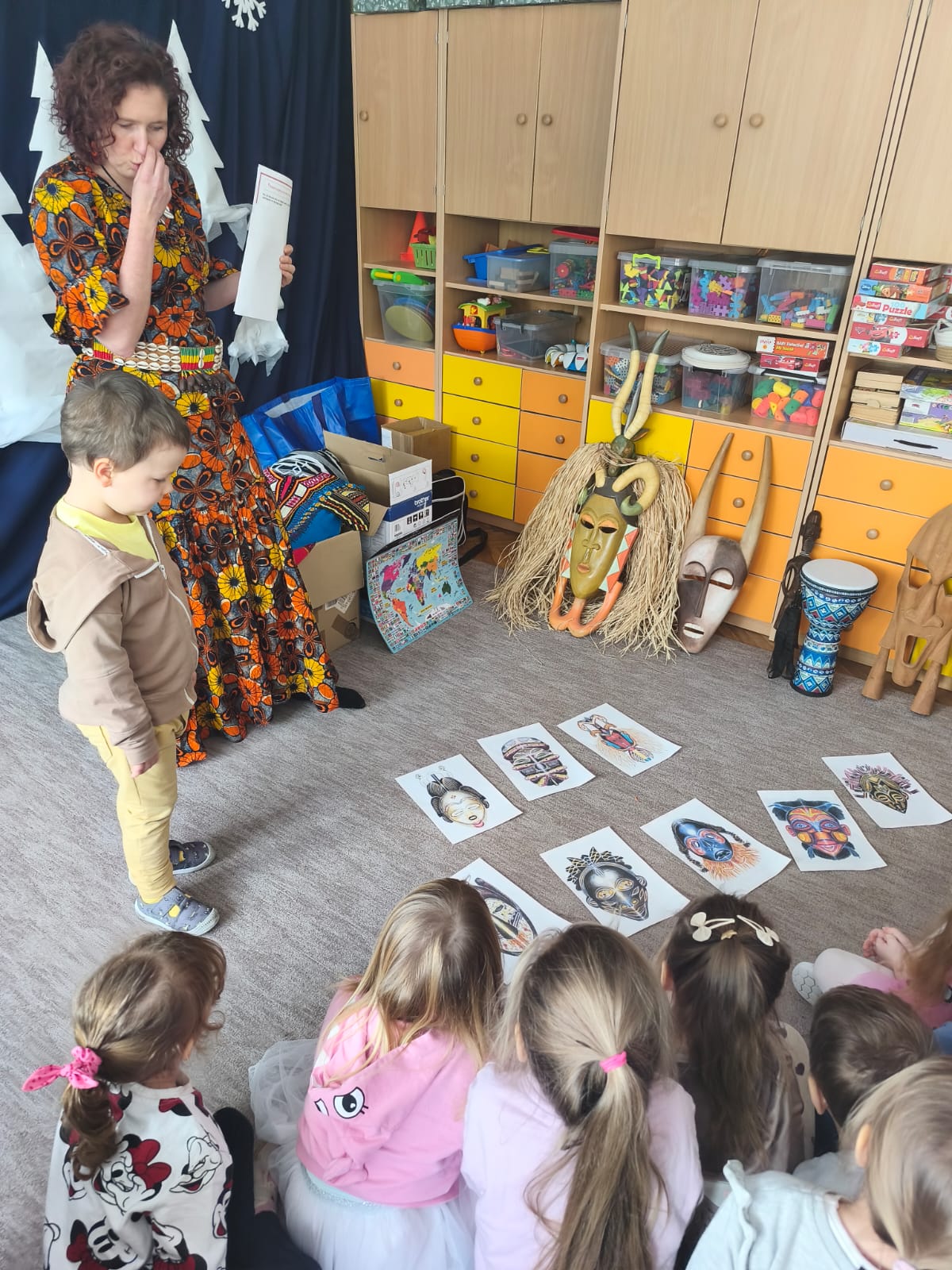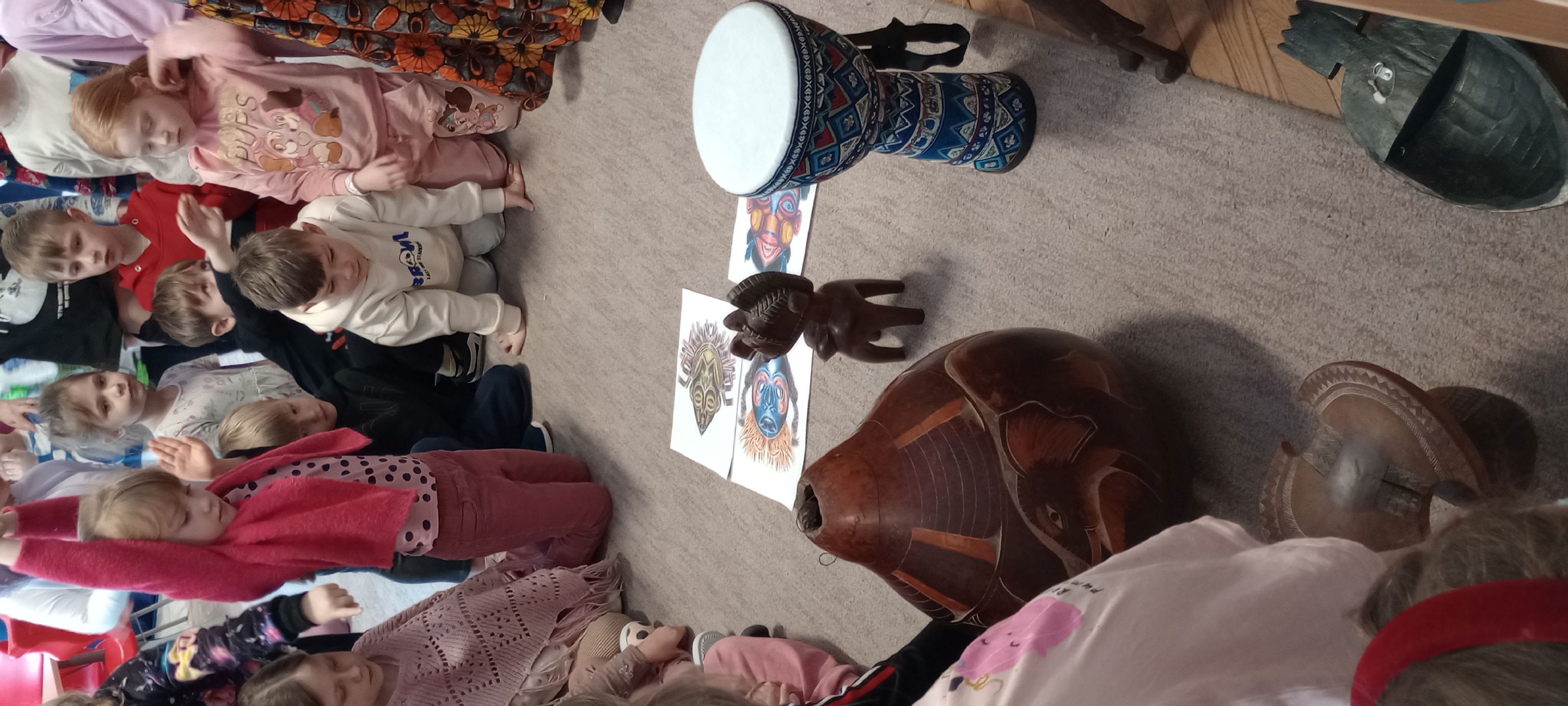 Ponadto bawiły się przy afrykańskiej muzyce i rytmach bębnów, Oglądały afrykańskie maski i tradycyjne stroje.