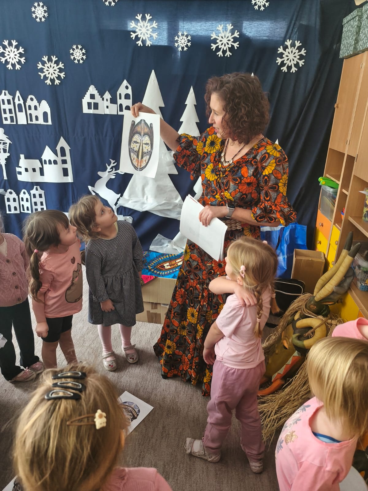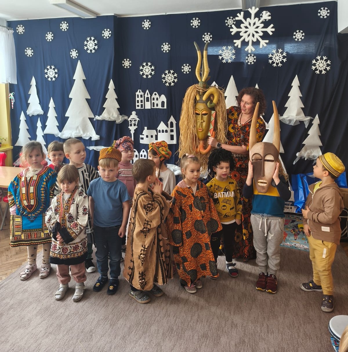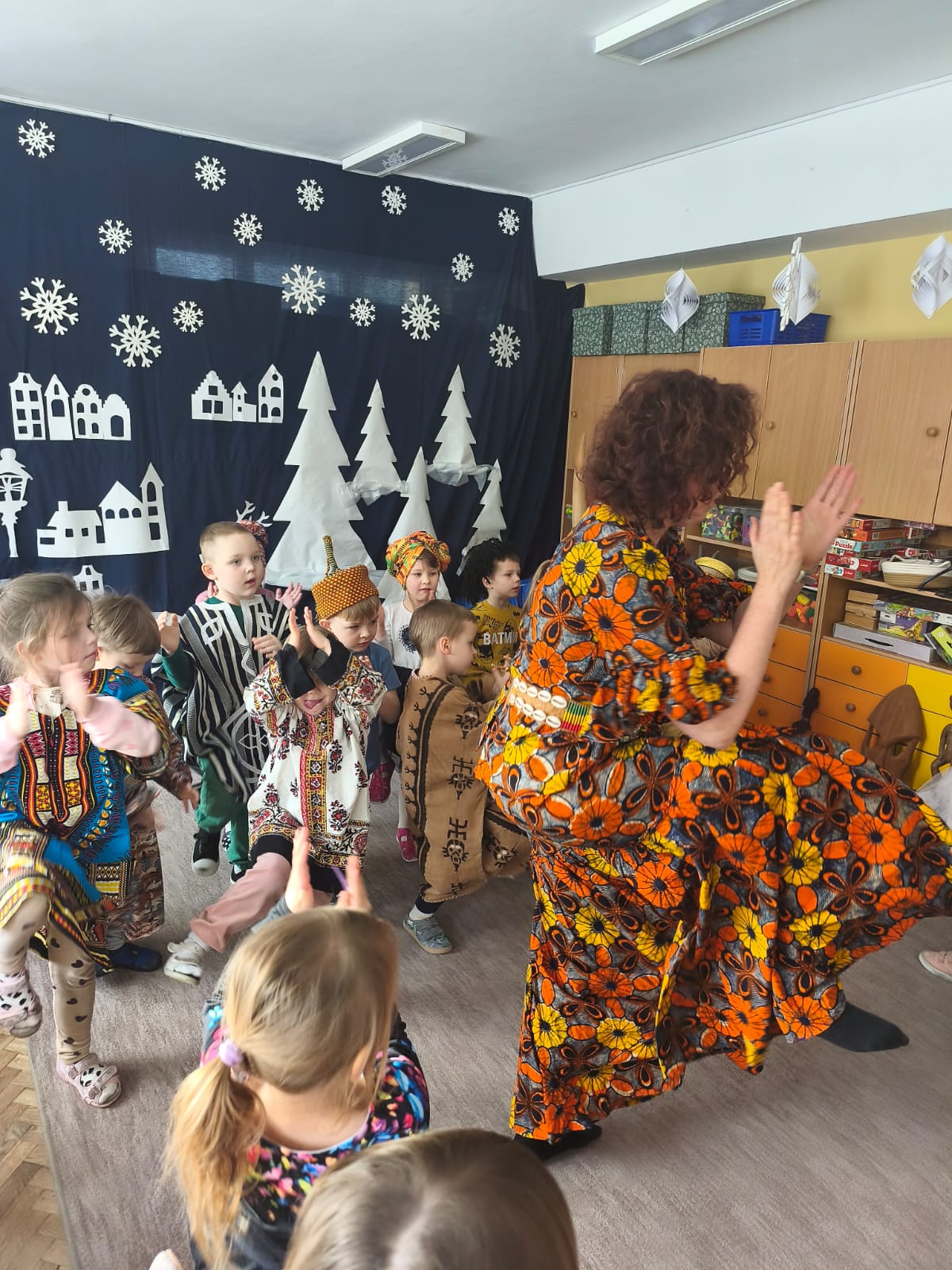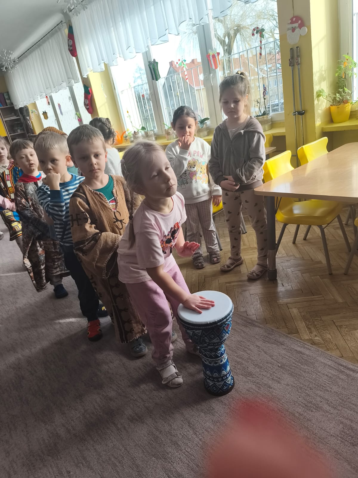 Ponadto bawiły się przy afrykańskiej muzyce i rytmach bębnów, Oglądały afrykańskie maski i tradycyjne stroje.