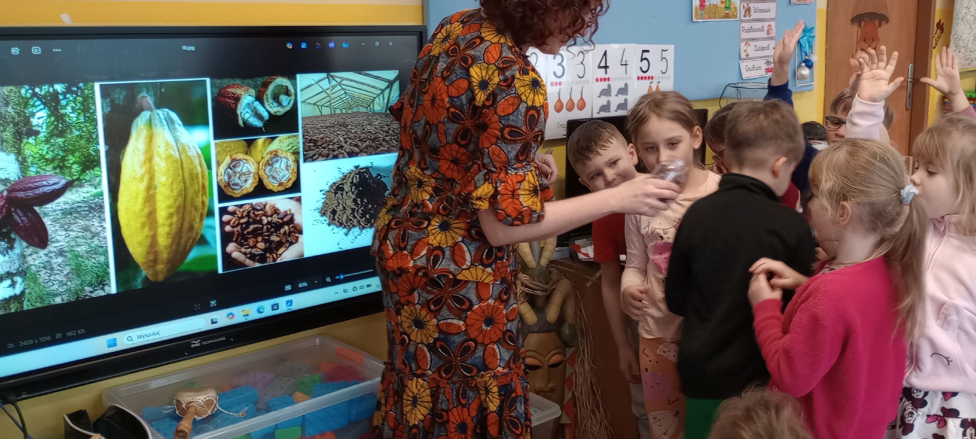 Podczas kolejnych zajęć z wielokulturowości dzieci zostały zaproszone przez panią Asię w barwną podróż po Afryce.