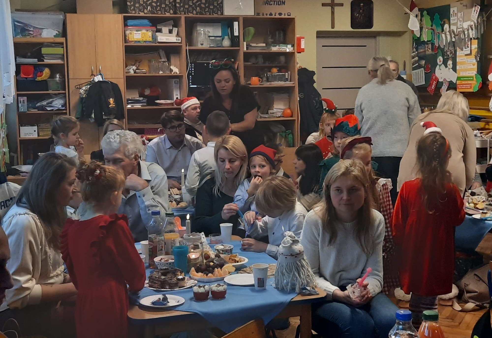 Następnie wszyscy zgromadzeni goście zasiedli do pysznego poczęstunku przygotowanego przez rodziców. Dziękujemy za obecność, pomoc w organizacji, a wszystkim życzymy Wesołych Świąt.