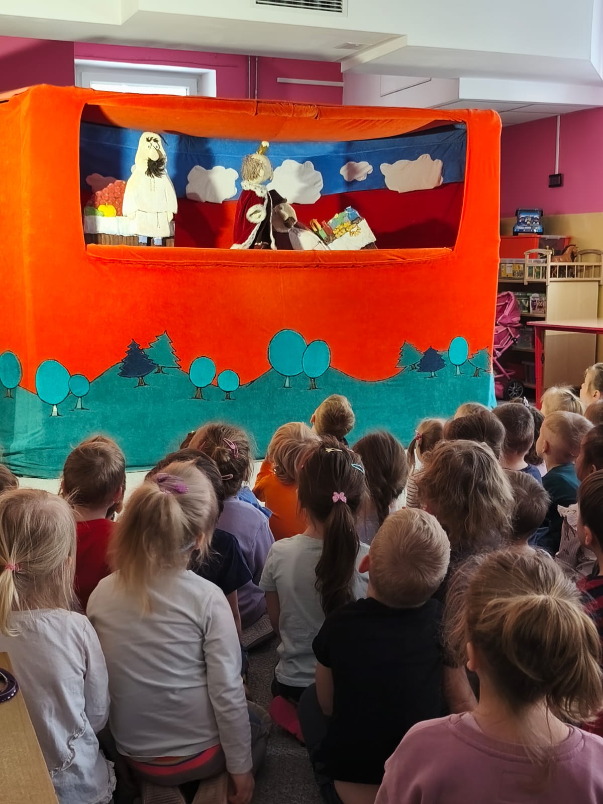 23 lutego do naszego przedszkola przyjechał Teatr WidziMisię. Dzieci obejrzały przedstawienie teatralne pt. „Konik Garbusek".