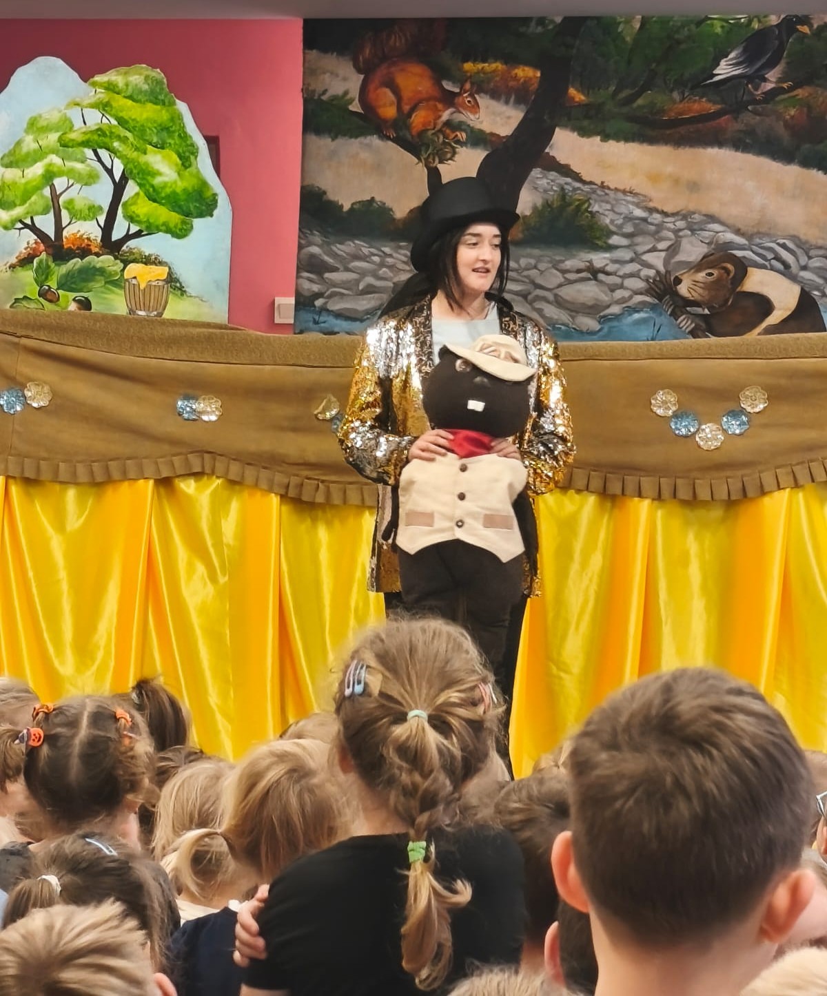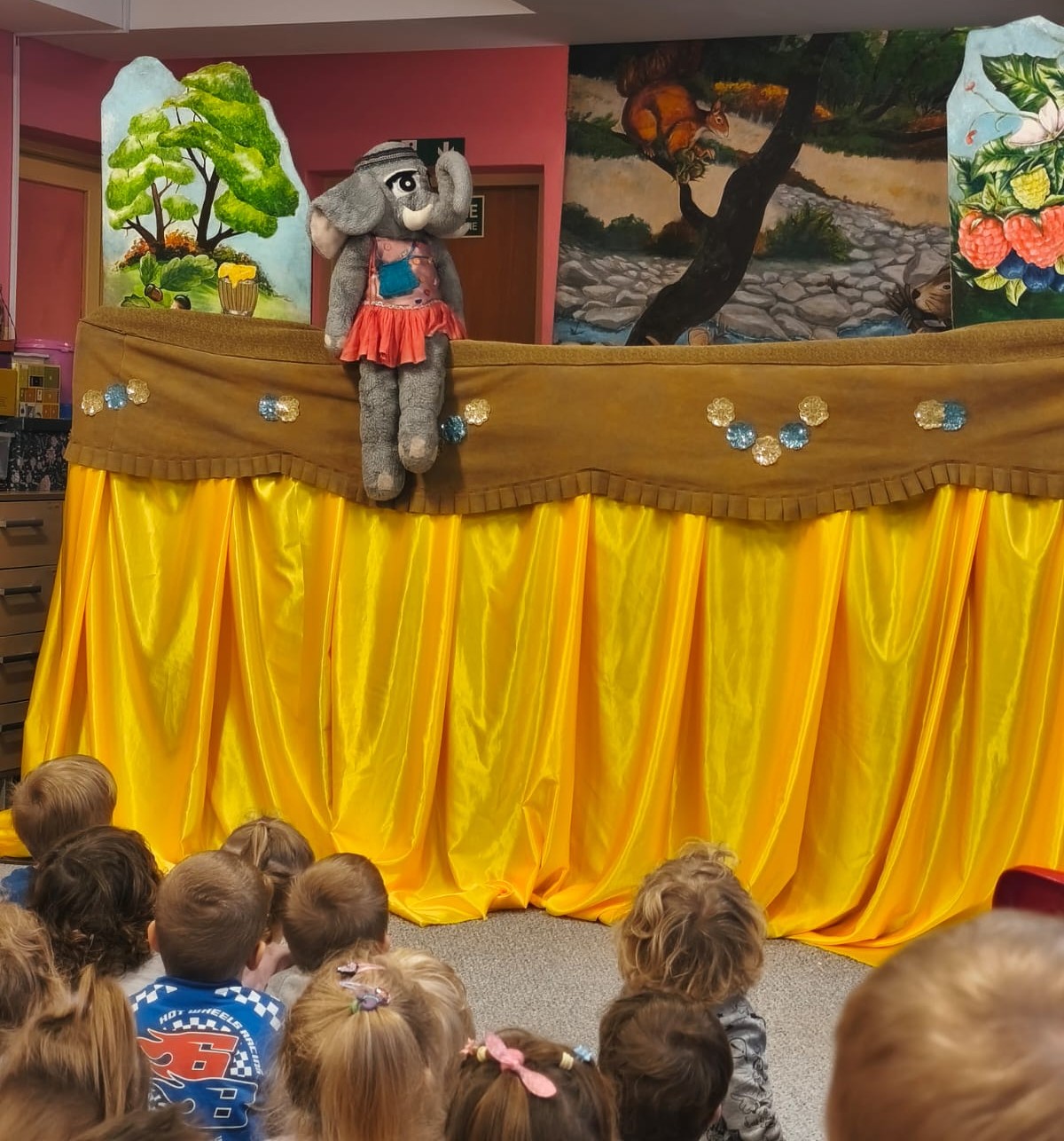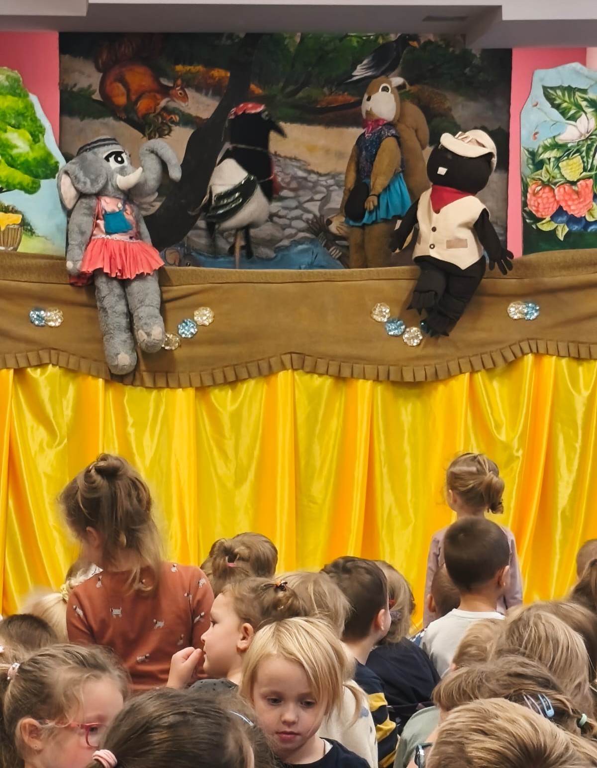 Dziś nasze przedszkolaki obejrzały teatrzyk kukiełkowy pt. „Kruszynka” w wykonaniu Teatru Lalek Pinokio z Nowego Sącza. Główna bohaterką przedstawienia była pewna słonica, która nie chciała pracować w cyrku i postanowiła zamieszkać w lesie. Tam odnalazła przyjaciół. Dzięki nim zrozumiała, jak ważne jest okazywanie sobie wzajemnej pomocy i akceptacji.