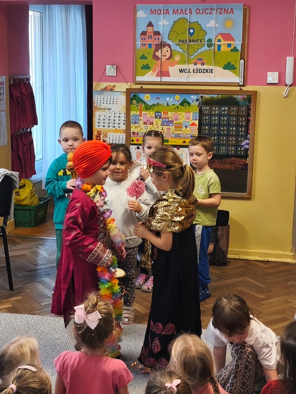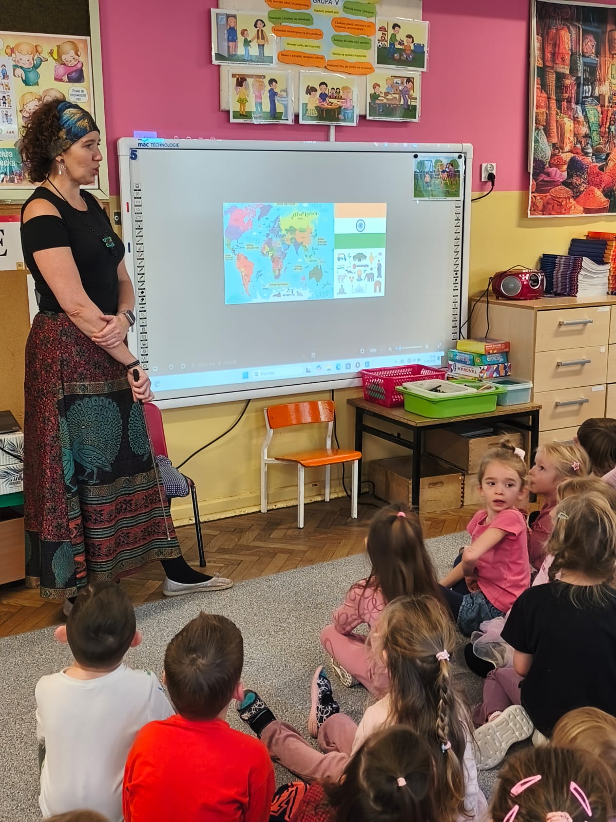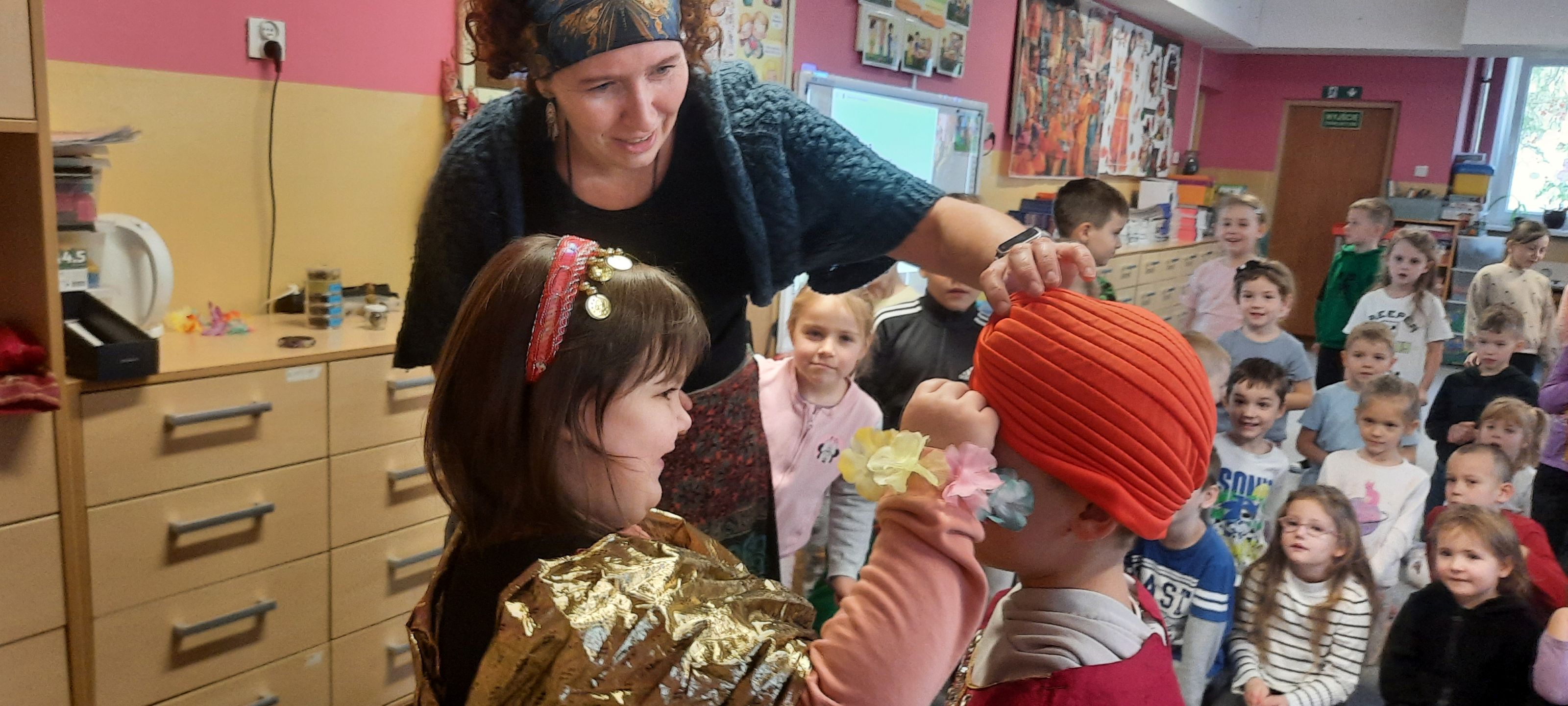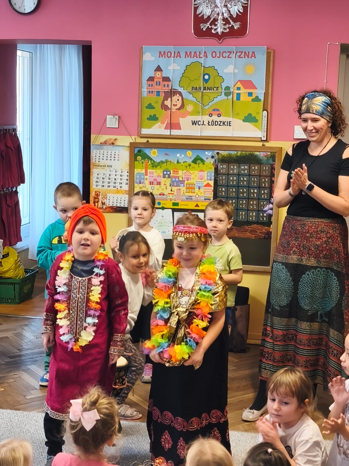 Przedszkolaki poznały tradycyjne stroje i biżuterię, indyjską muzykę i taniec. Poczuły też zapach przypraw charakterystycznych dla indyjskiej kuchni.