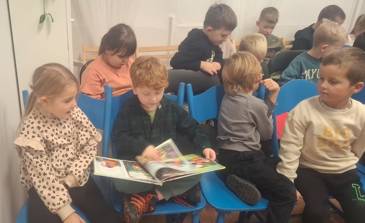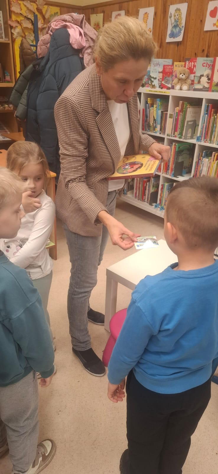 5 listopada grupa Ważki wybrała się do filii Miejskiej Biblioteki Publicznej przy ulicy Łaskiej. Podczas wizyty starszaki zwiedziły bibliotekę i poznały zasady wypożyczania książek oraz zachowania się w tym miejscu. Odwiedziły też czytelnię, w której pani bibliotekarka przeczytała dzieciom opowiadanie pt. „Cicho, cichuteńko”. Na zakończenie przedszkolaki oglądały różne, ciekawe pozycje książkowe.