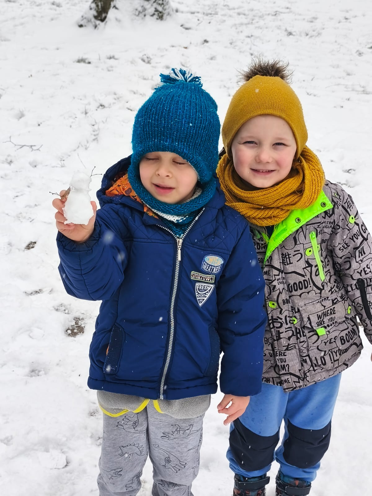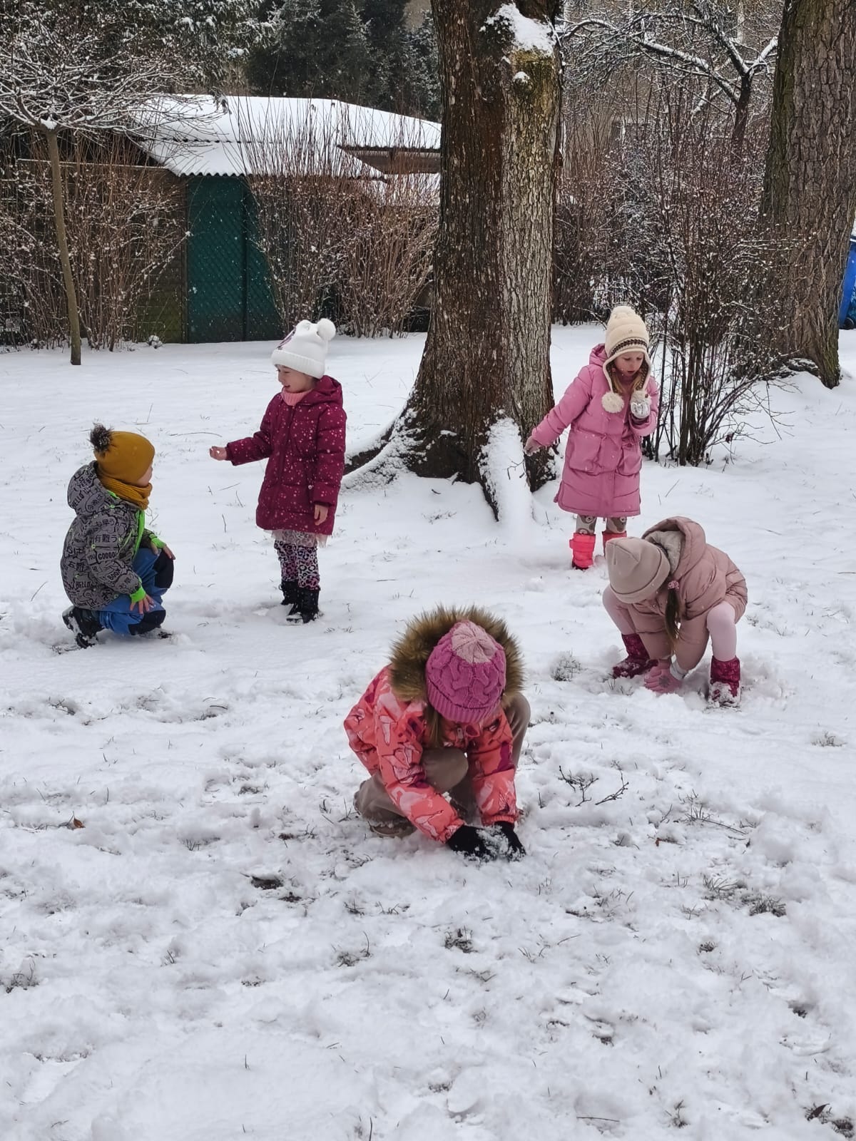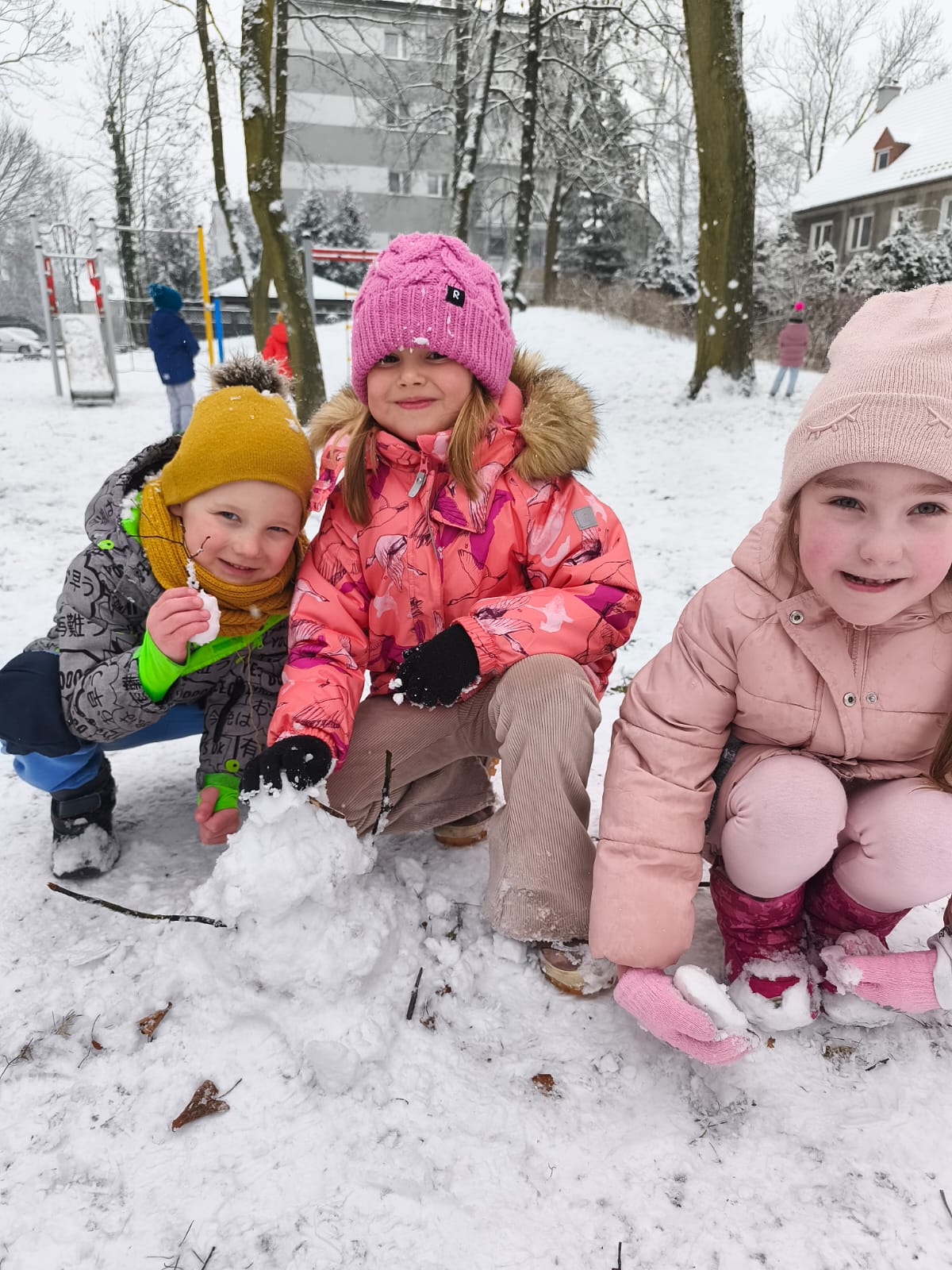Z entuzjazmem lepiły śnieżki, bałwanki i inne śnieżne stworki. Zimowe zabawy wywołały u przedszkolaków mnóstwo radosnych okrzyków. Była to też świetna okazja do rozwijania sprawności ruchowej oraz hartowania organizmu i wzmacniania odporności.